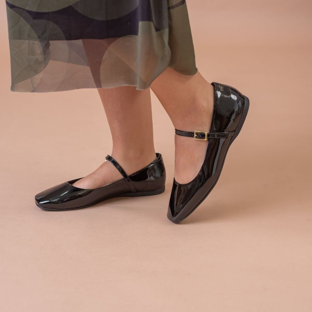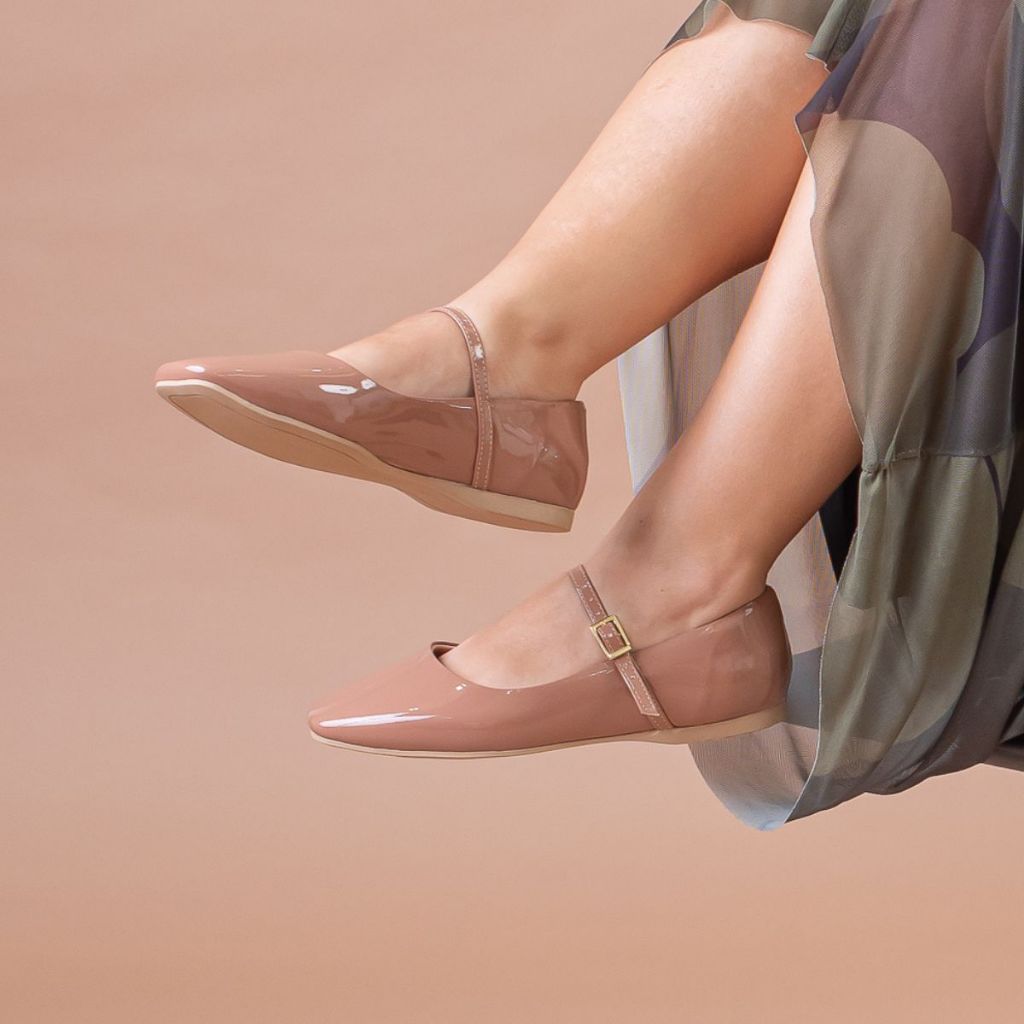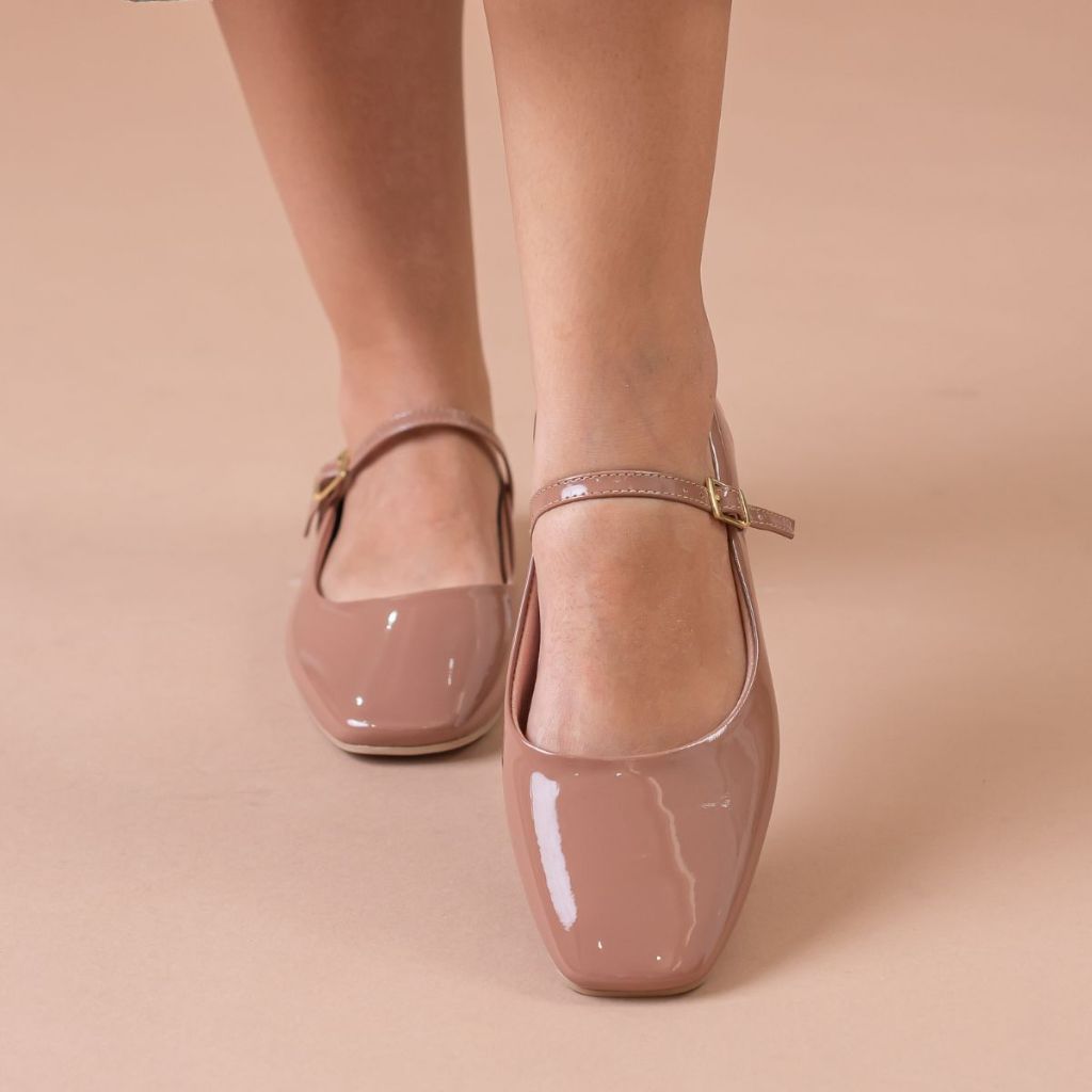 Sapatilha Verniz Feminina Elegante Boneca Conforto e Estilo para Dia a Dia Bico Quadrado Retro Cherry