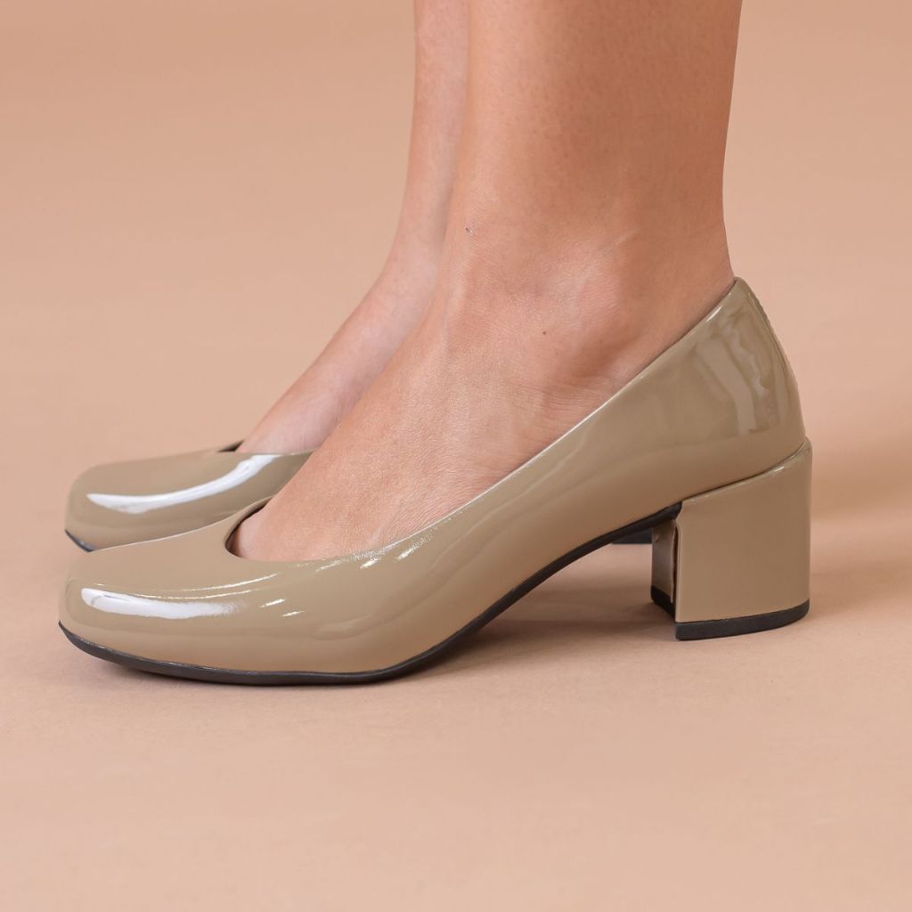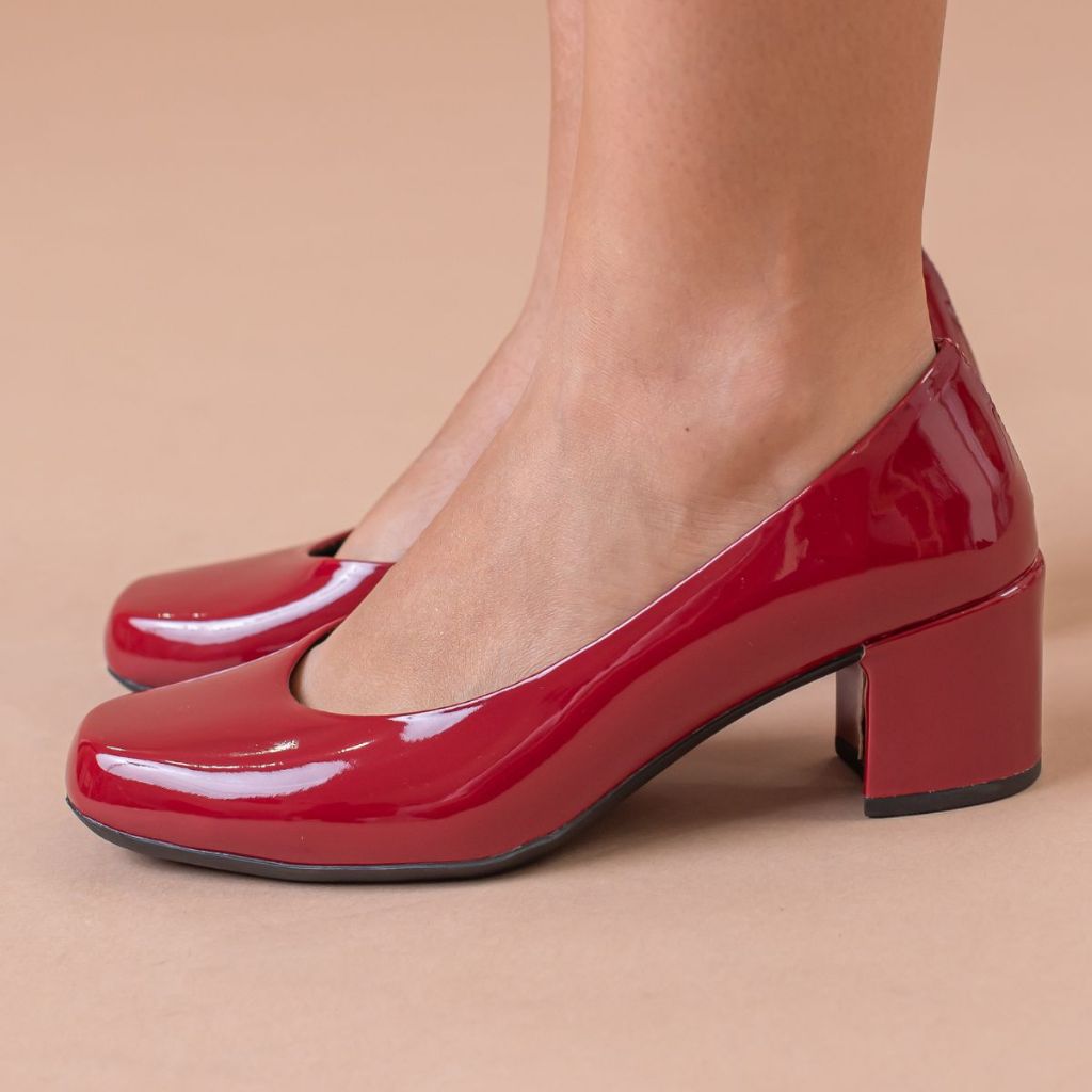 Sapato Feminino Elegante Scarpin Salto Bloco 5cm Retro Bico Quadrado Conforto Estilo Mocha Mousse Cherry Outono Inverno