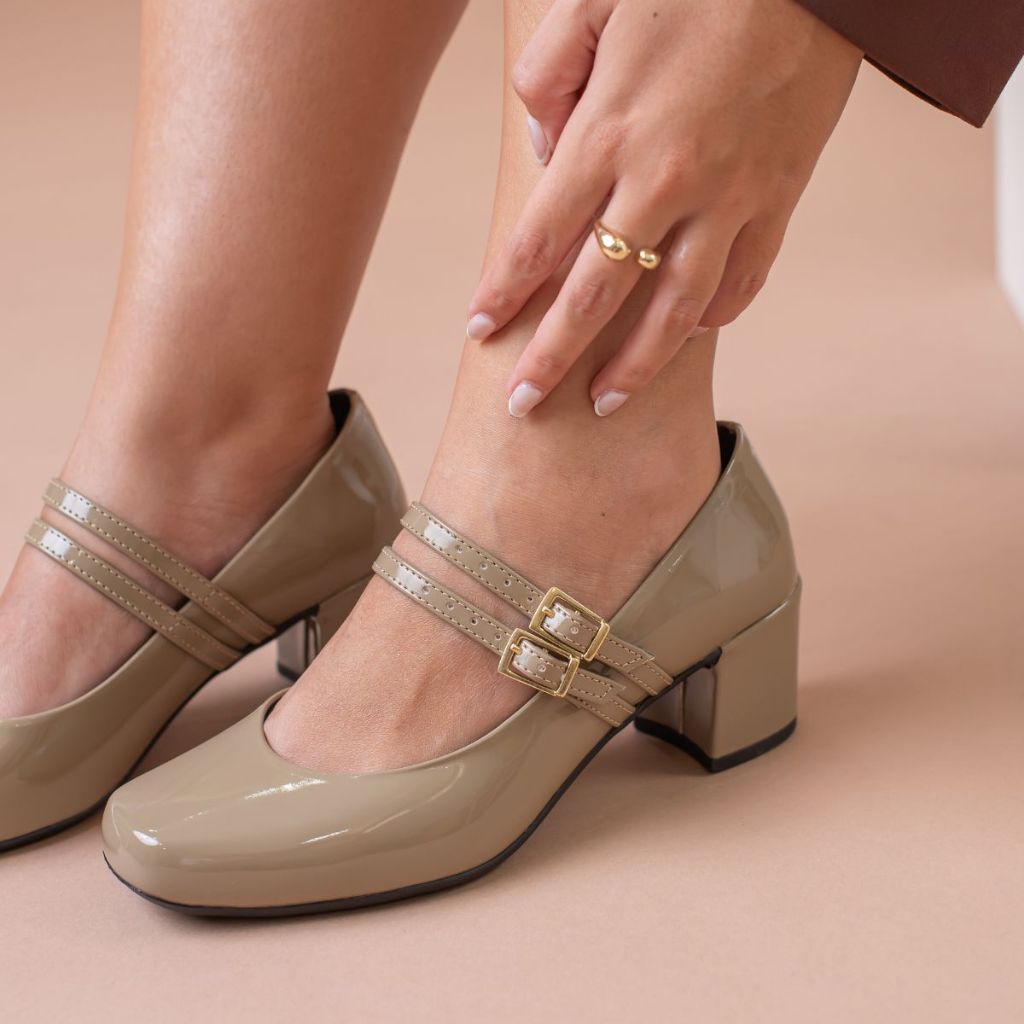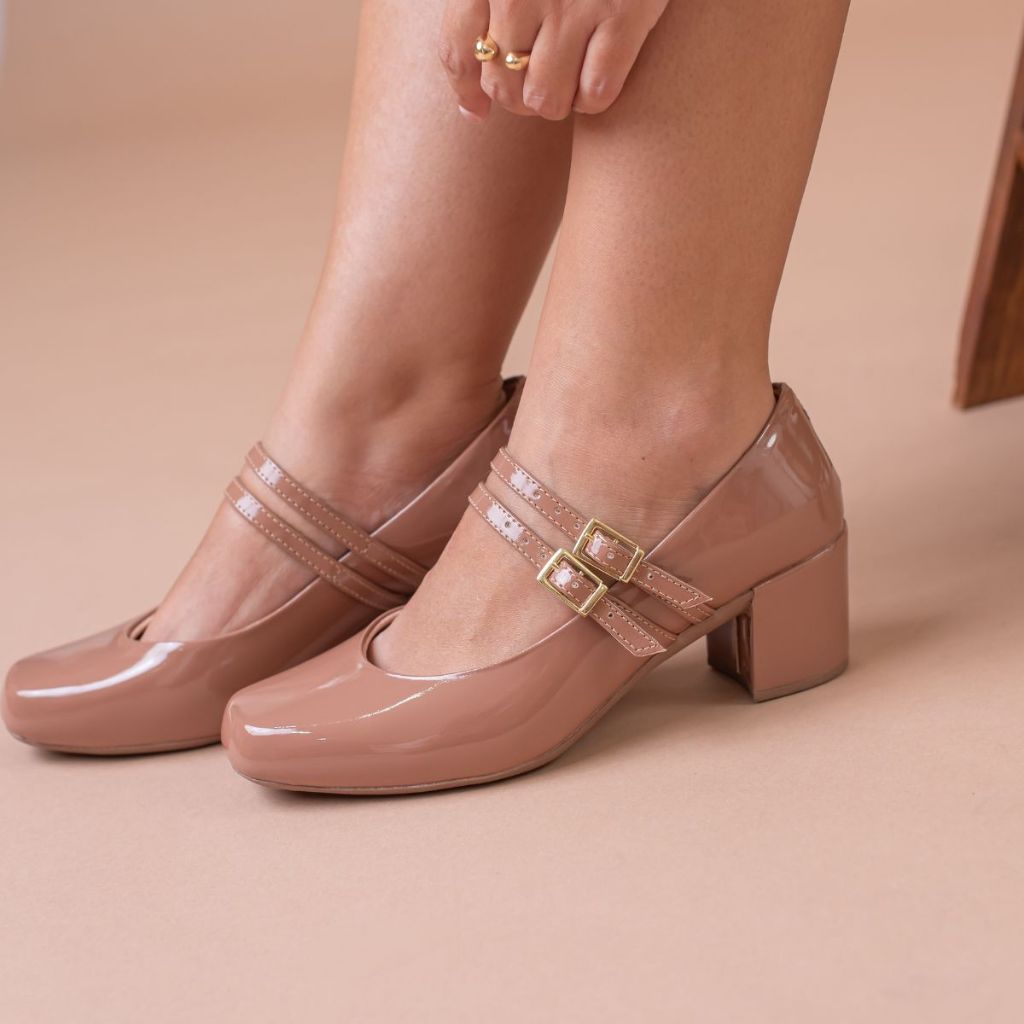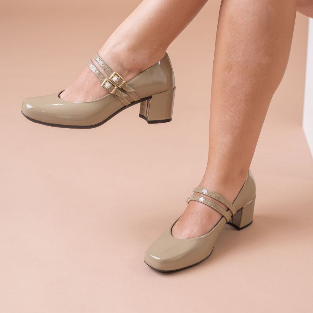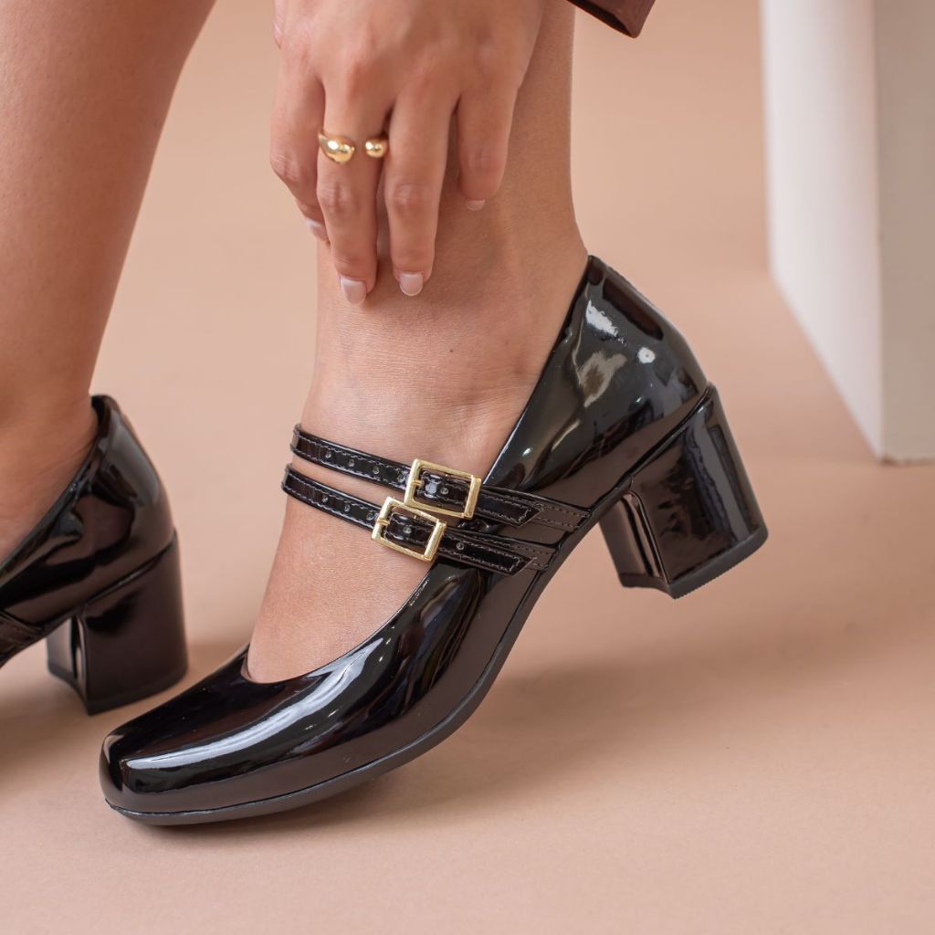 Sapato Feminino Elegante Scarpin 2 F Salto Bloco 5cm Retro Bico Quadrado Conforto Estilo Cherry Outono Inverno