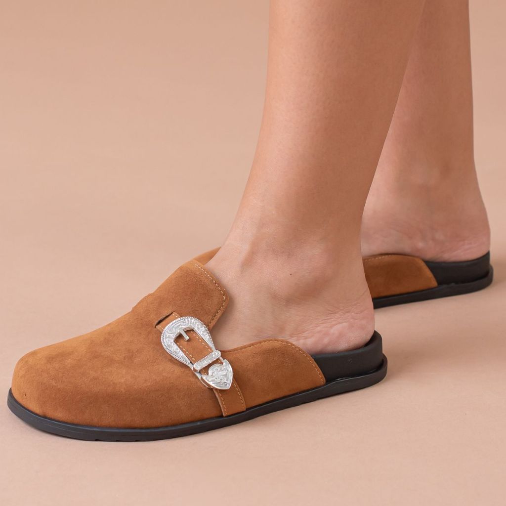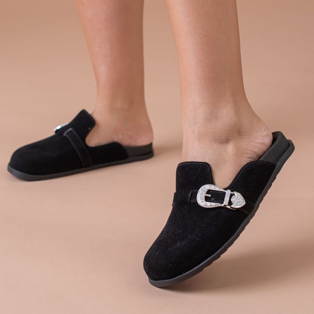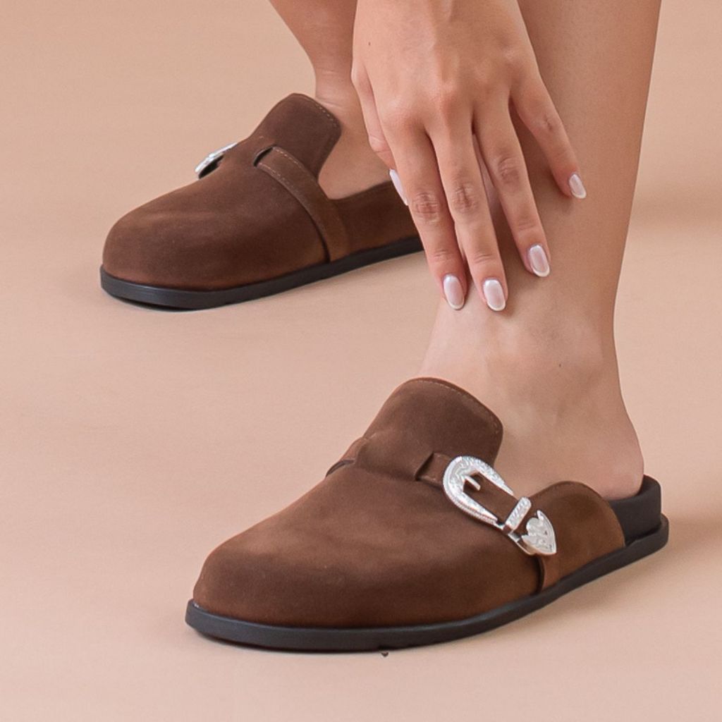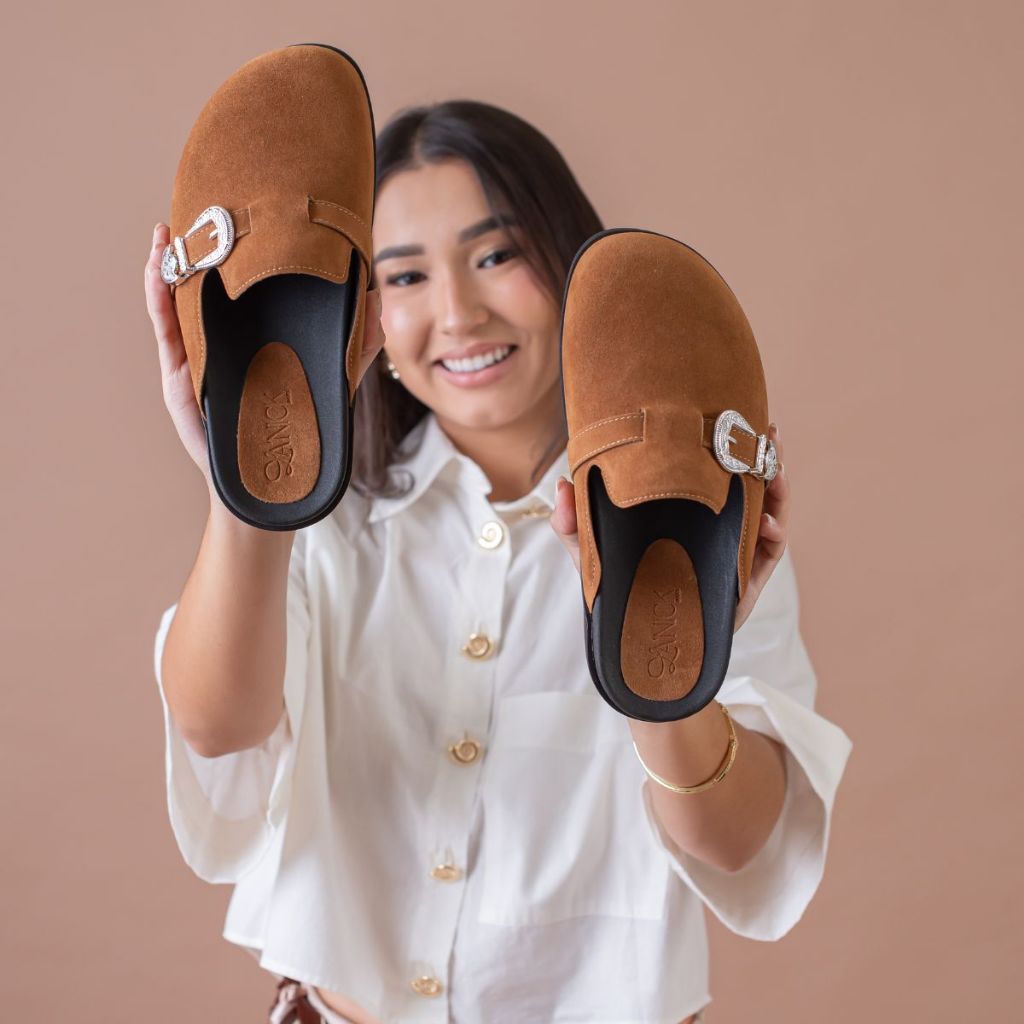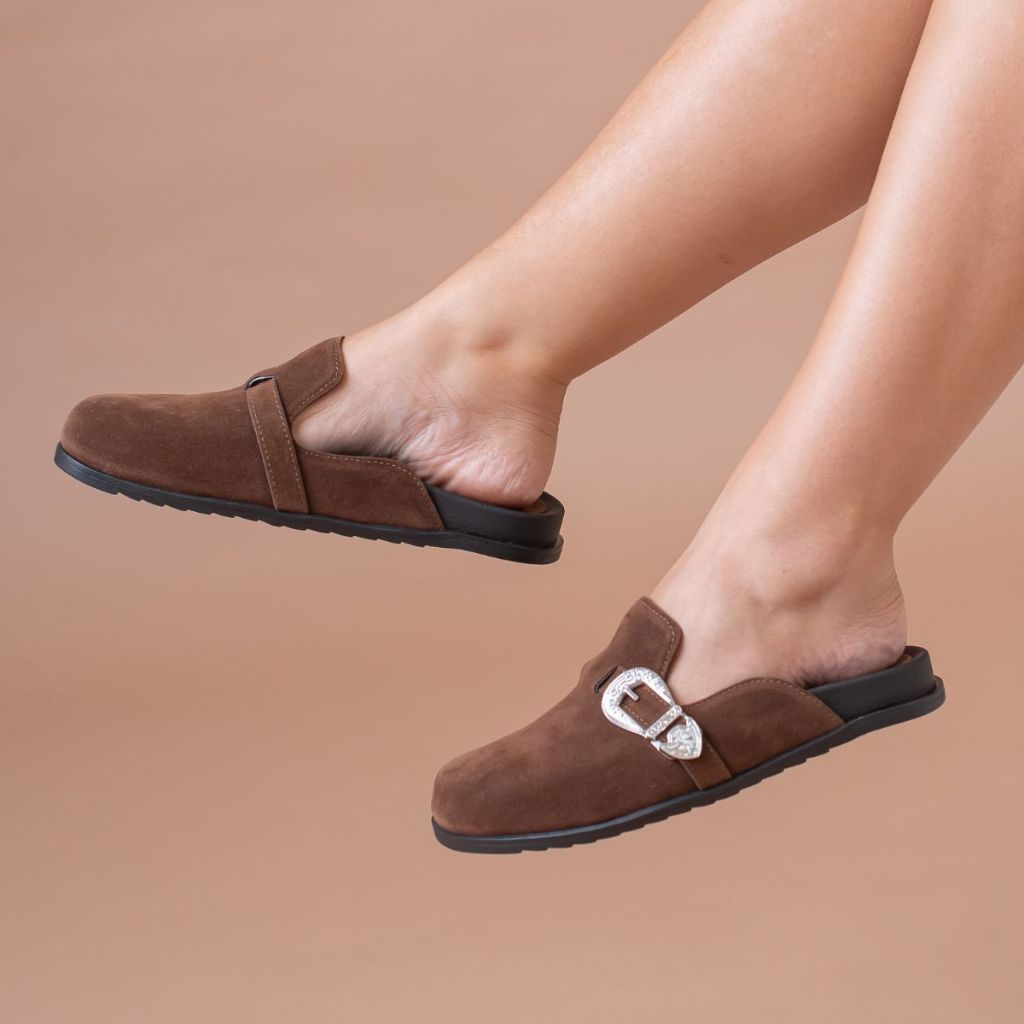 Clog Sapato Feminino Mule Babuche Camurça Com Fivela Estilo Conforto Elegância Anatômico Sandália