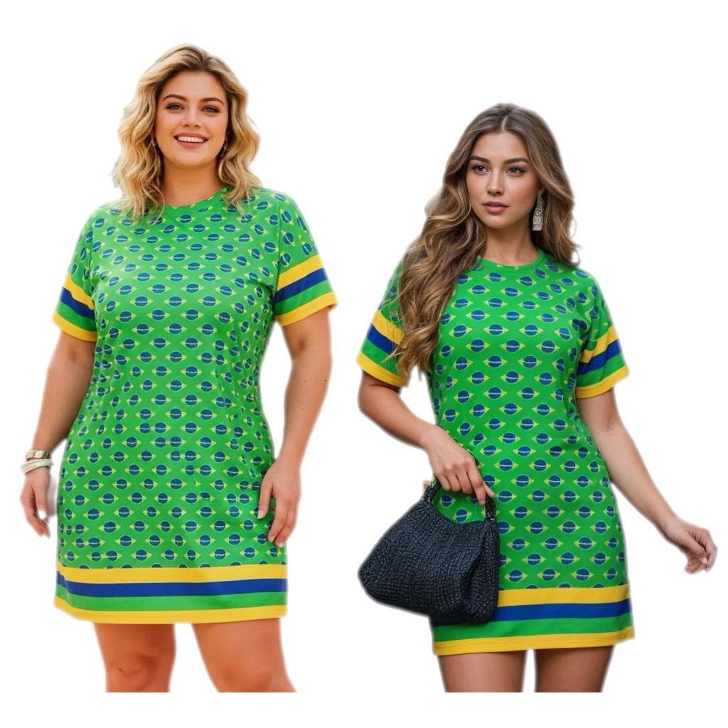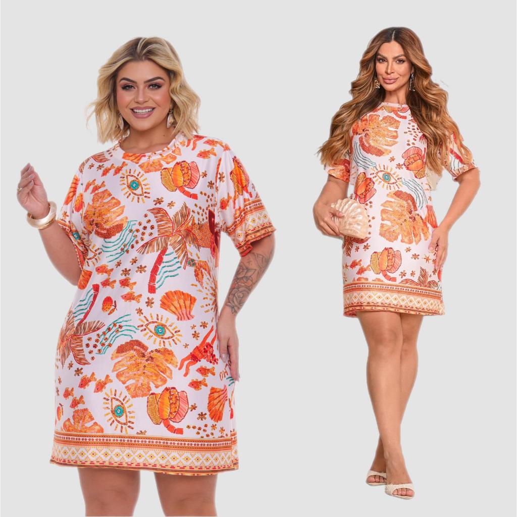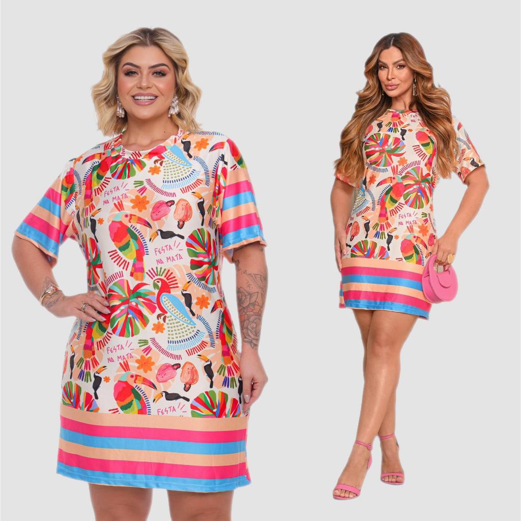 Vestido Camisão Estampado Barrado (P ao EXG) Plus Size E Slim,Moda Maior