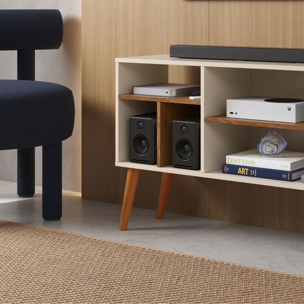Rack de Sala e Quarto Para Tv Com Nichos e Pé Palito