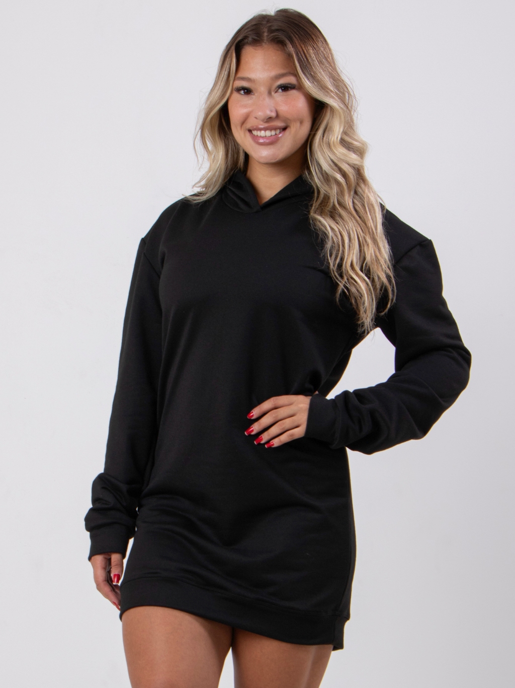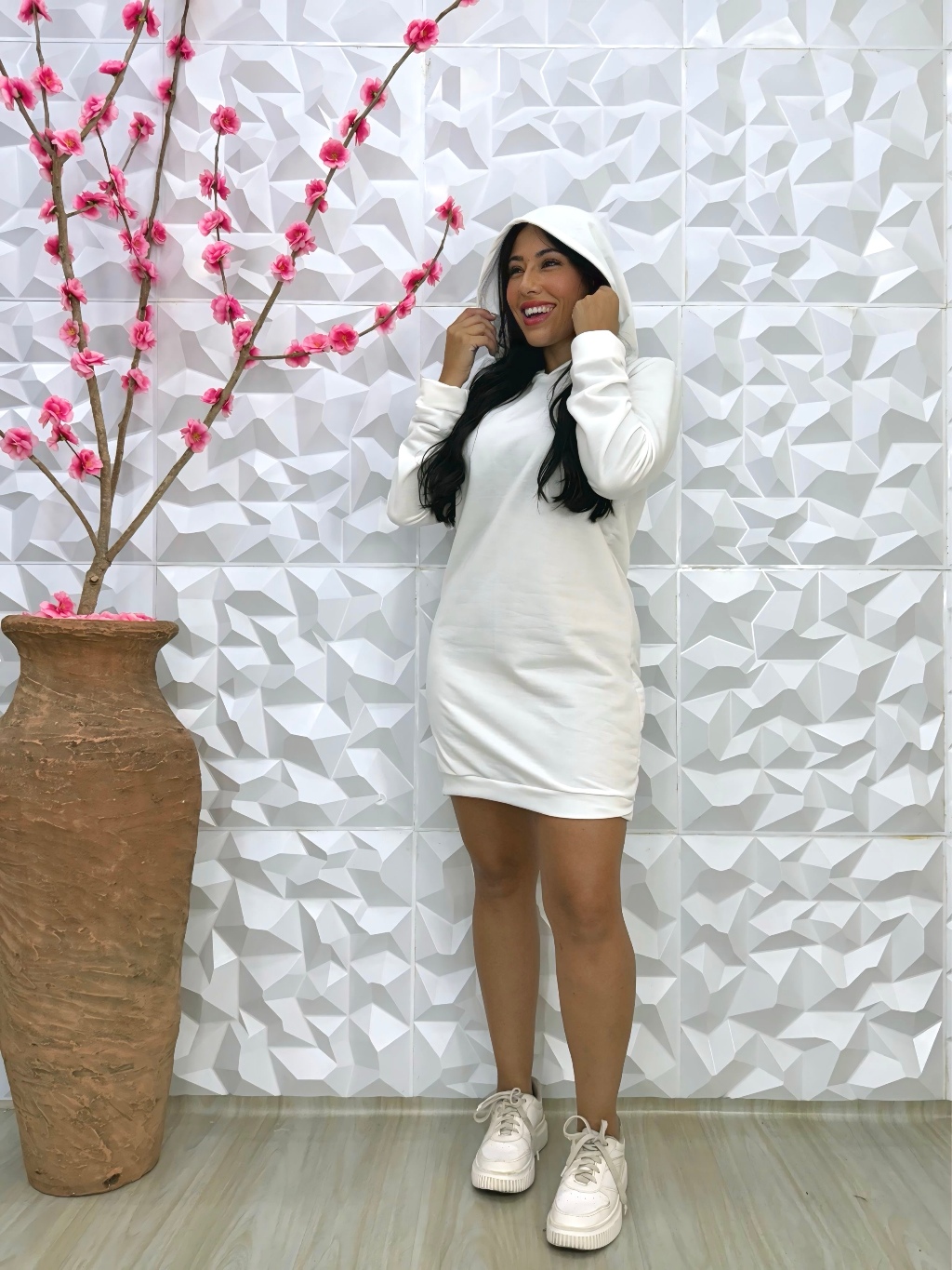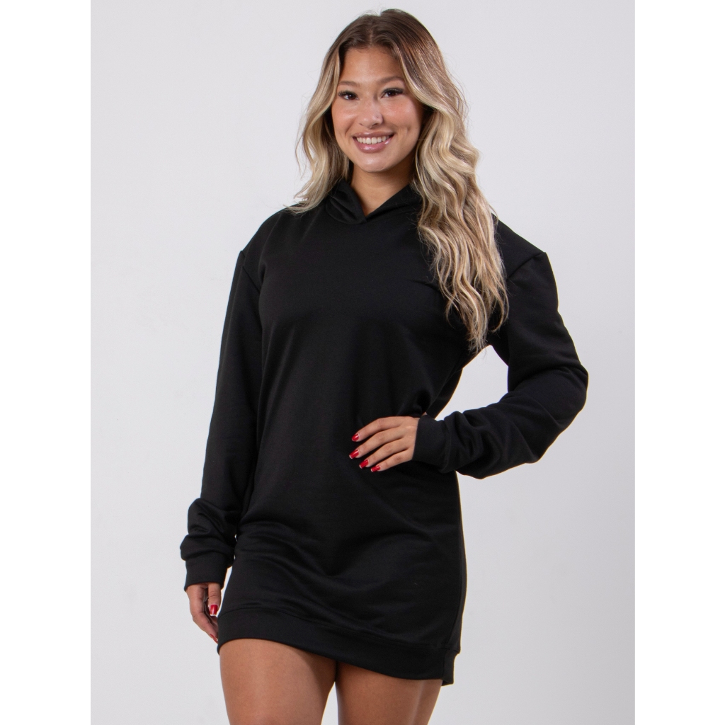 Blusão Feminino Vestido Moletinho Moletom Liso Com Capuz Feminino MAYU Curto Manga Longa Blogueira