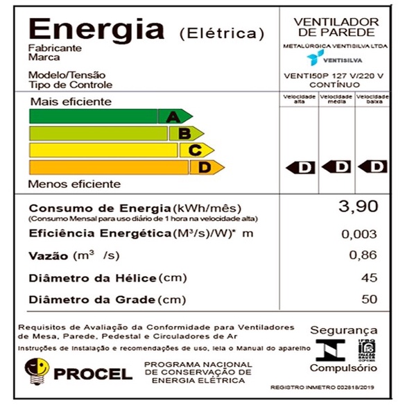 Ventilador de Parede 50cm Preto Pintura Epóxi Cromada - Ventisilva