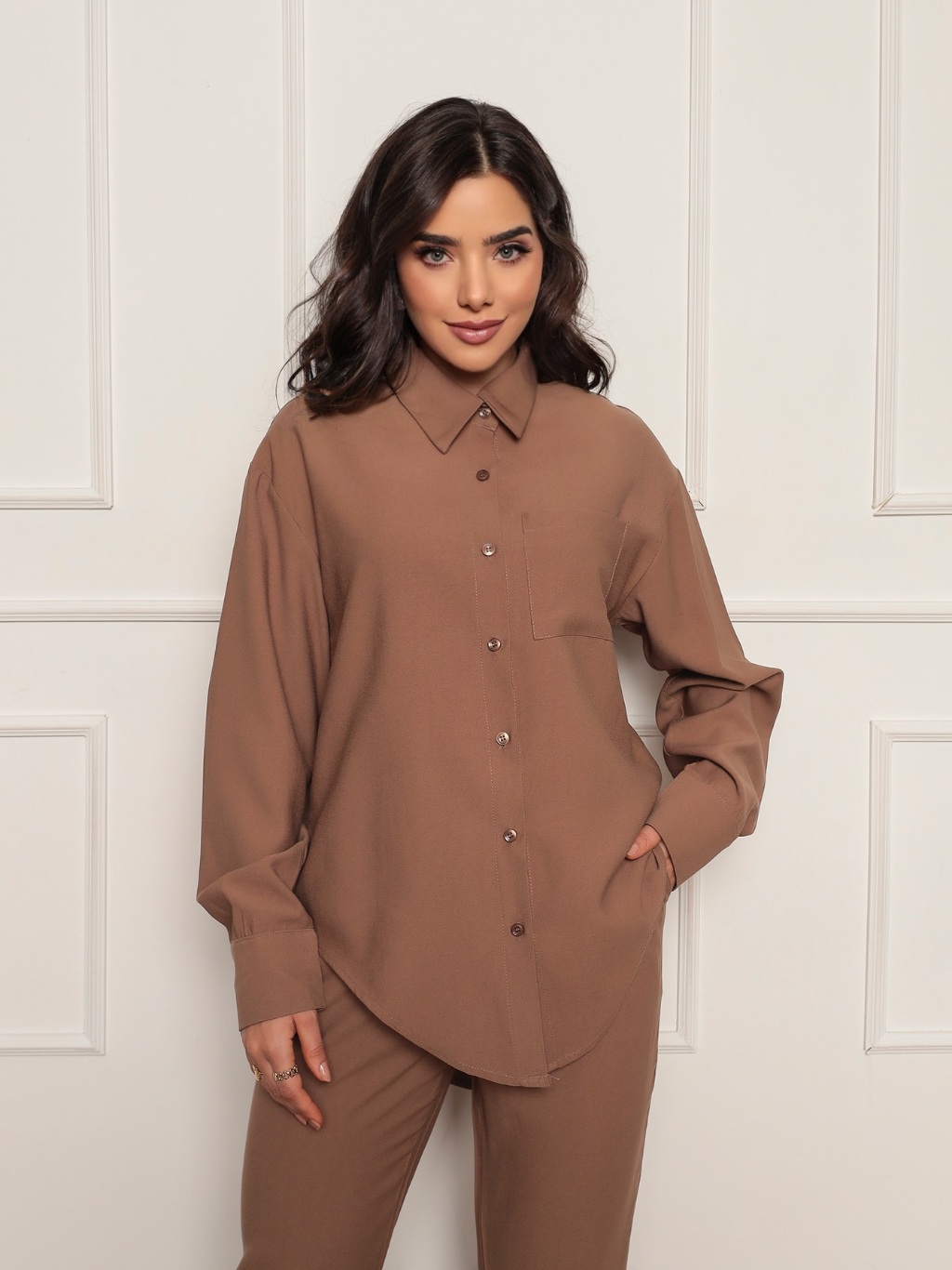Conjunto 8030 camisa e calca tecido marrant sensorial com bolso frontal e lateral barra redonda