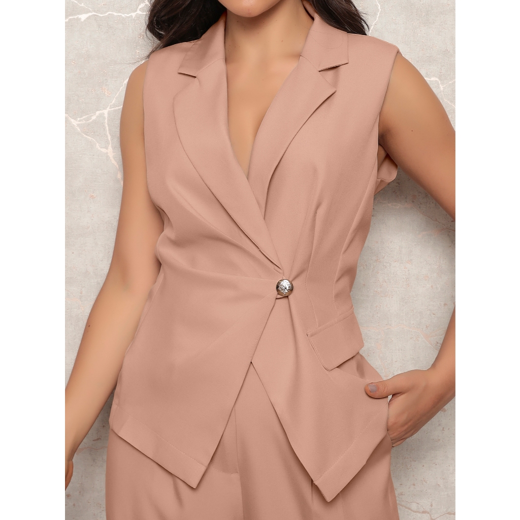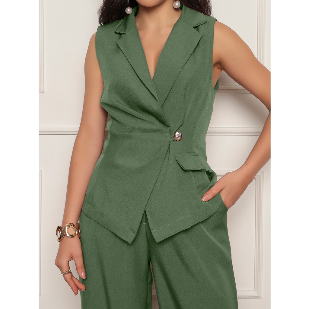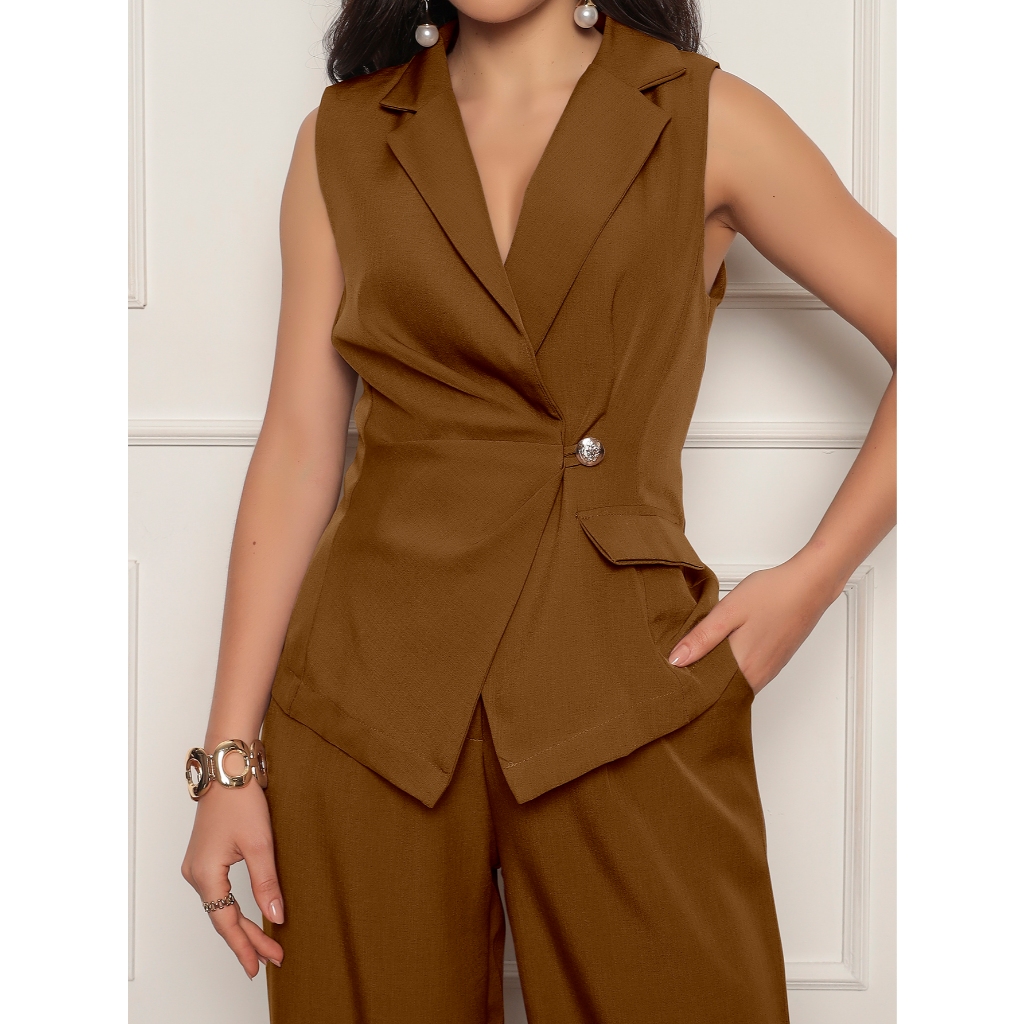 Conjunto 8022 colete com detalhe de dobra / calca pantalona tecido luis twill com bolso
