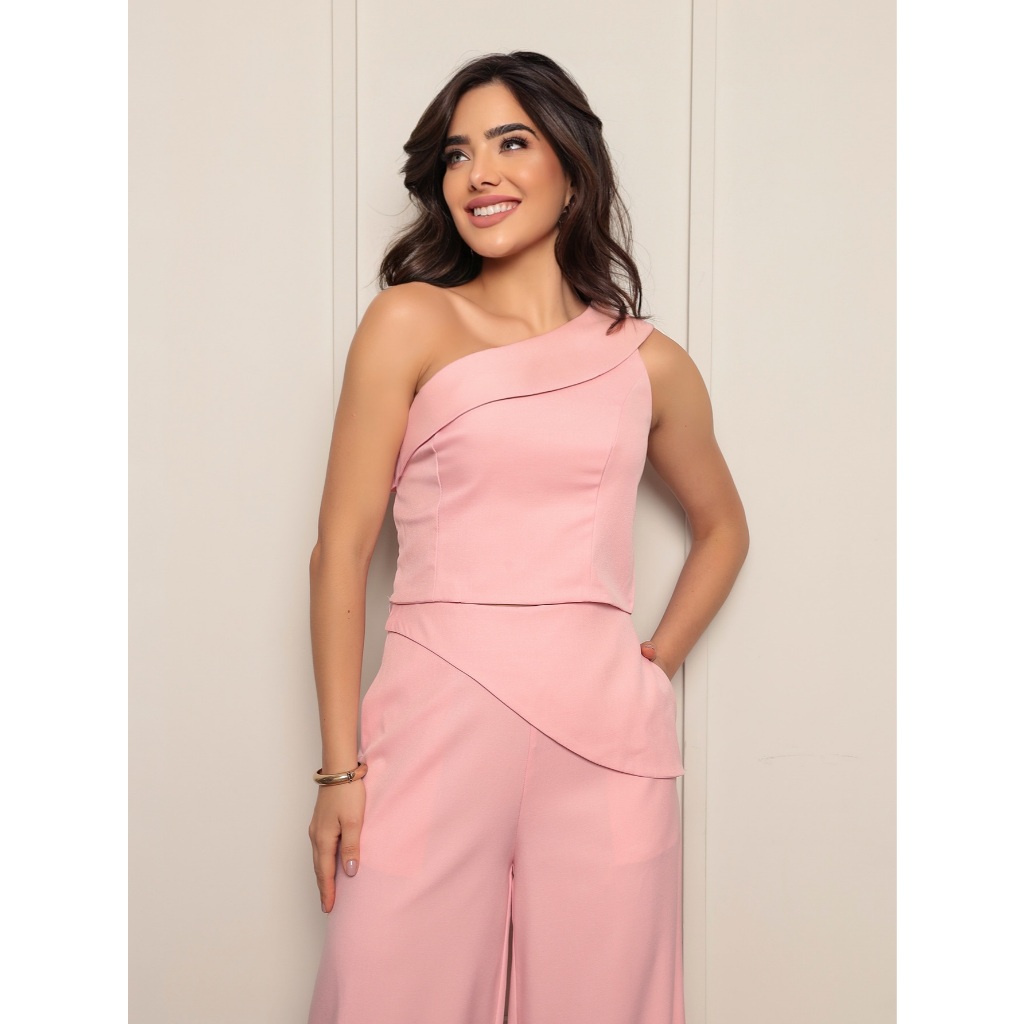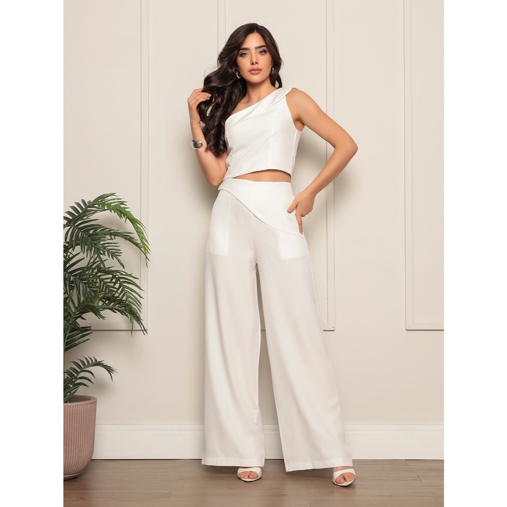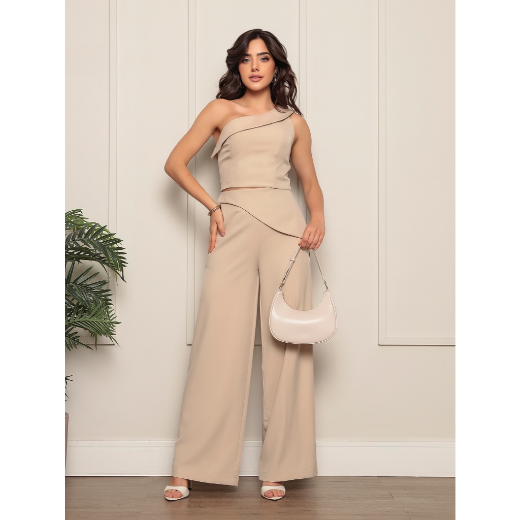Conjunto 8015 blusa sem manga calca pantalona luis twill com bolso funcional detalhe de dobra