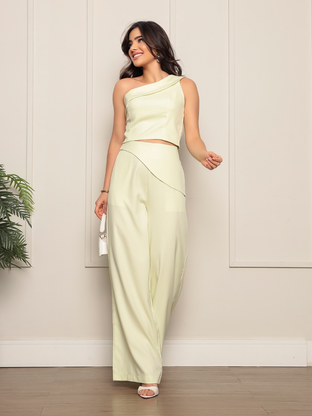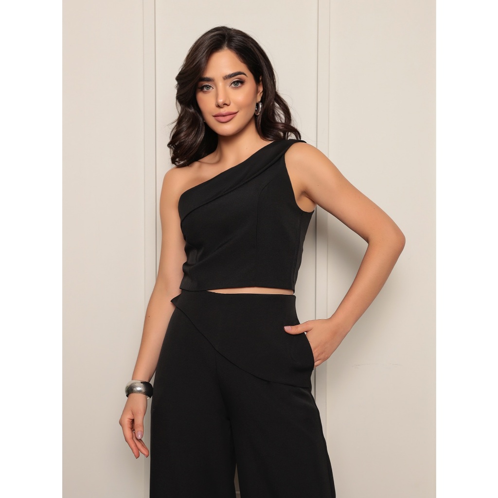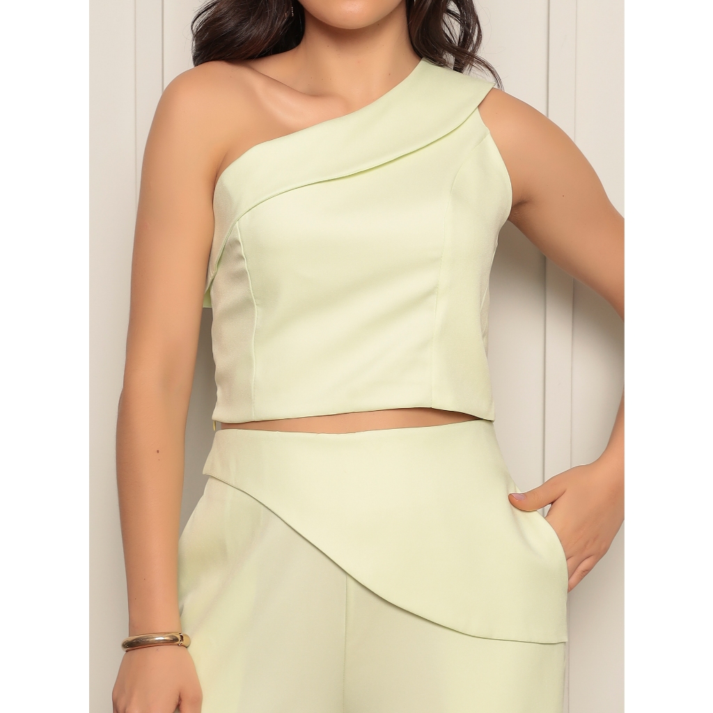 Conjunto 8015 blusa sem manga calca pantalona luis twill com bolso funcional detalhe de dobra