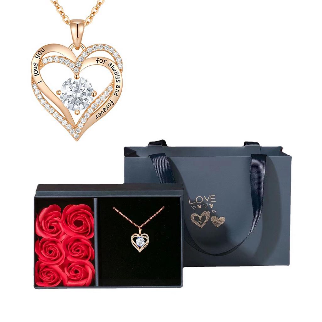 Colar Feminino Caixa De Flores Artificial Para Sempre Pingente Coração Namorada Esposa Dia Dos Namorados