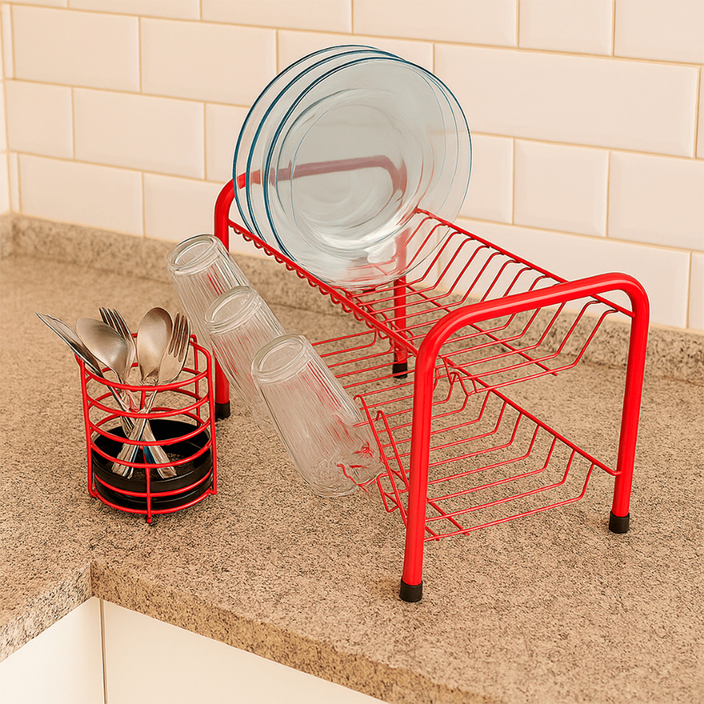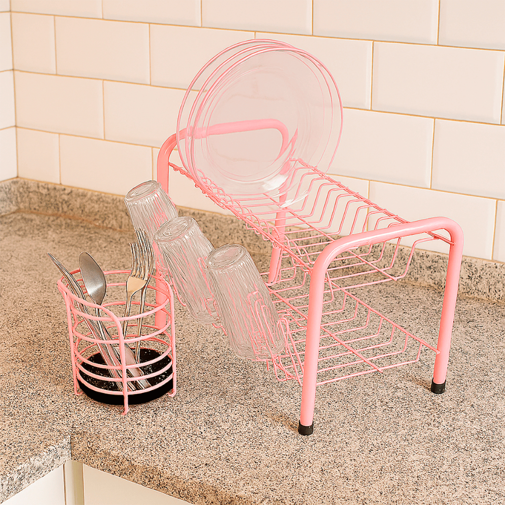 Kit Escorredores de Louça Berço Dois Andares Beliche 3 cores Porta Copos Cozinha Pia Bancada Grande