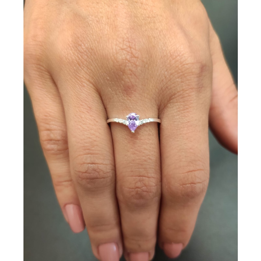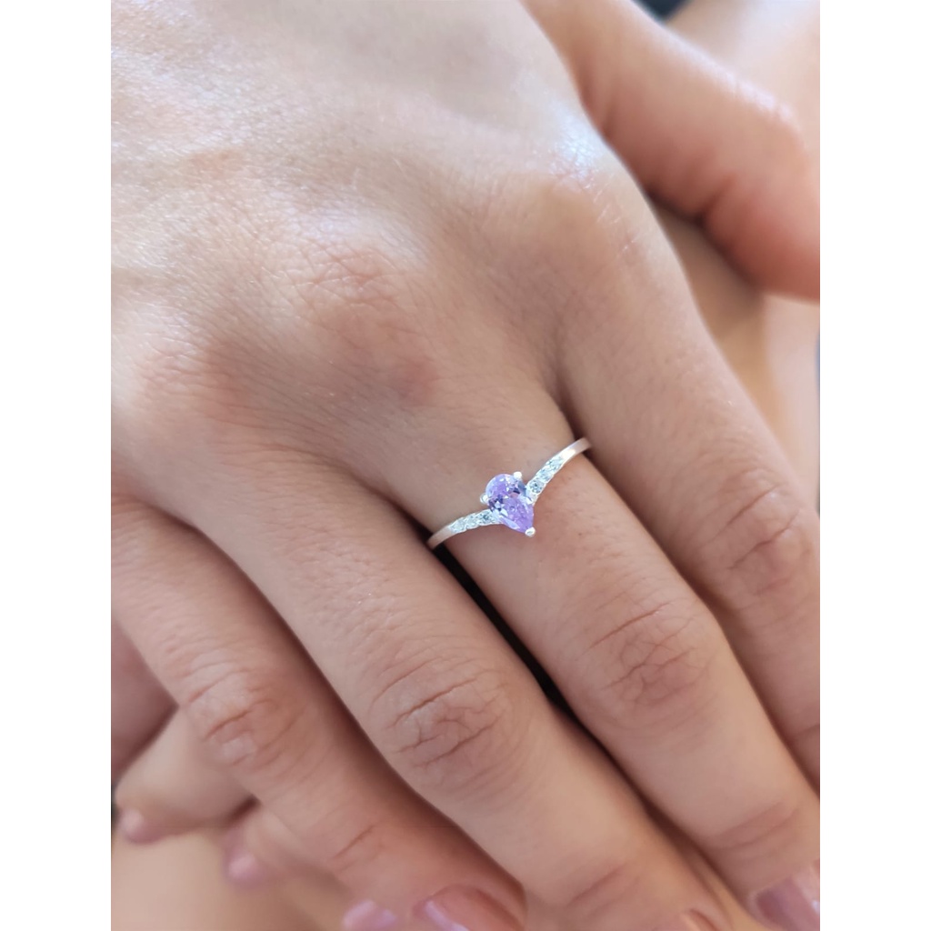 Anel Solitario Zirconia Gota Prata 925