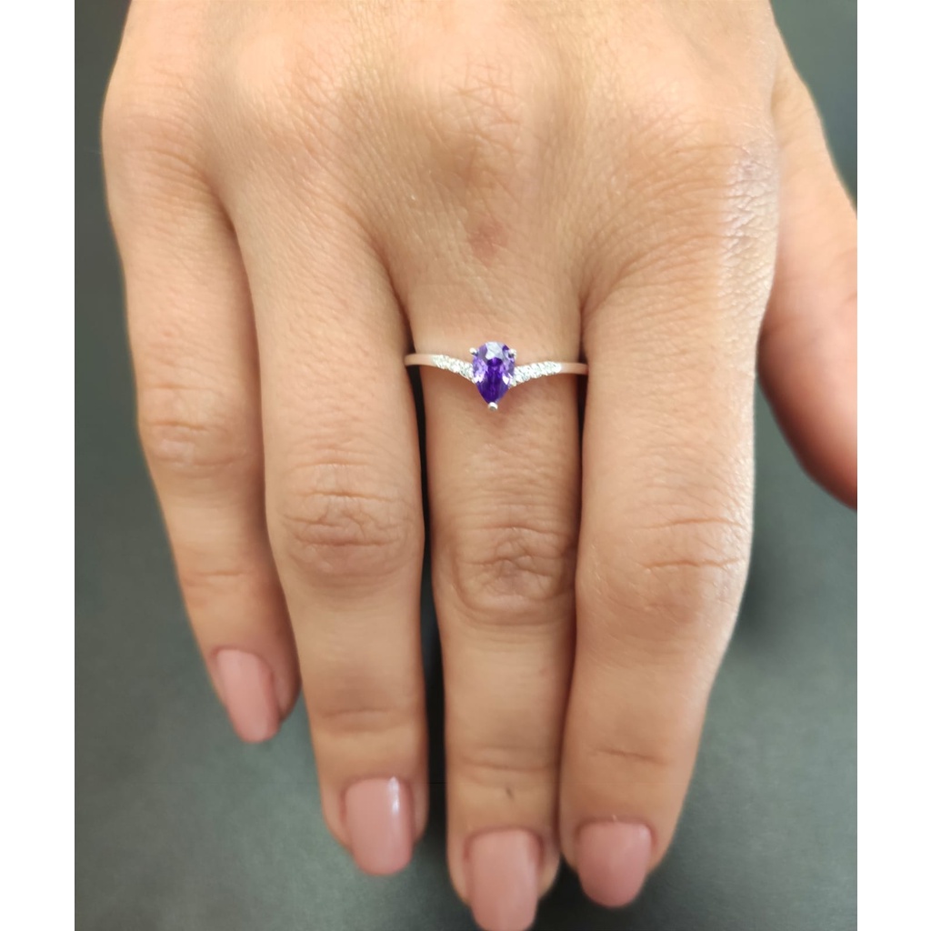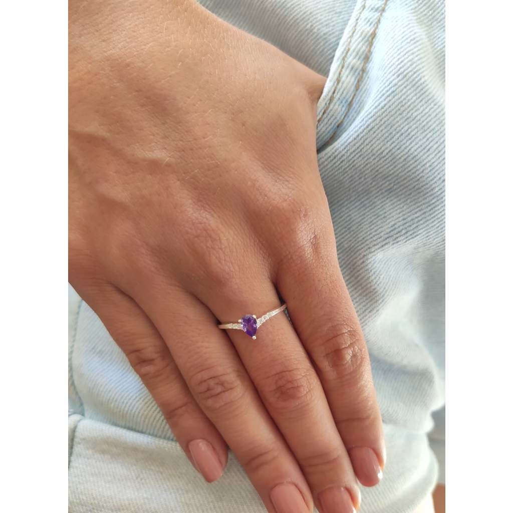 Anel Solitario Zirconia Gota Prata 925