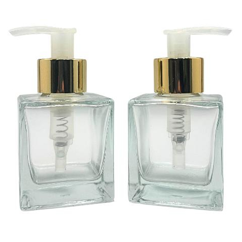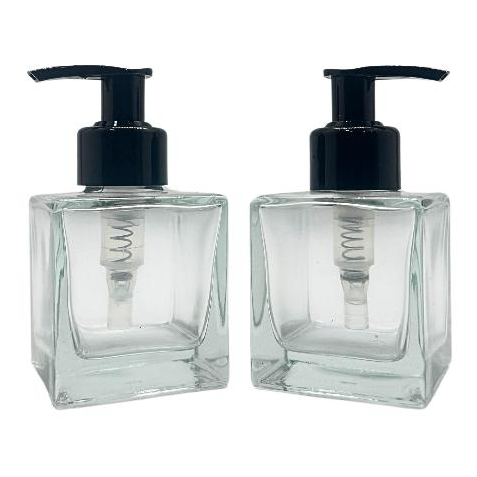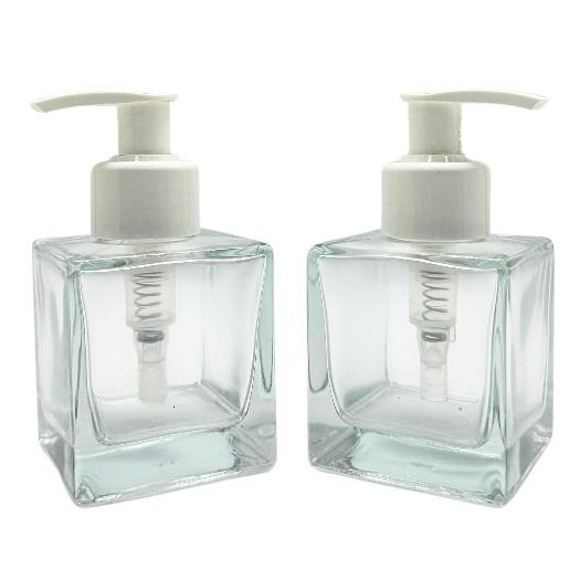 Kit 02 Frascos Porta Sabonete de Vidro Cubo 100ml Com Válvula Pump Para Saboneteira Álcool Gel