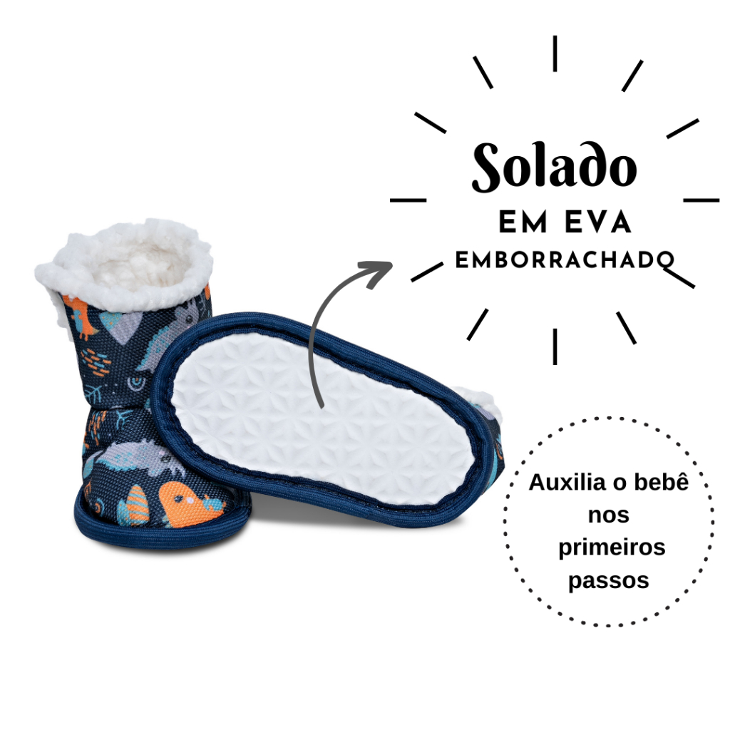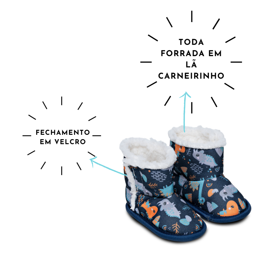 Botinha Bebê Pantufa Menina e Menino Tam 14 ao 22 Forrada Em Lã Inverno Com Solado Antiderrapante