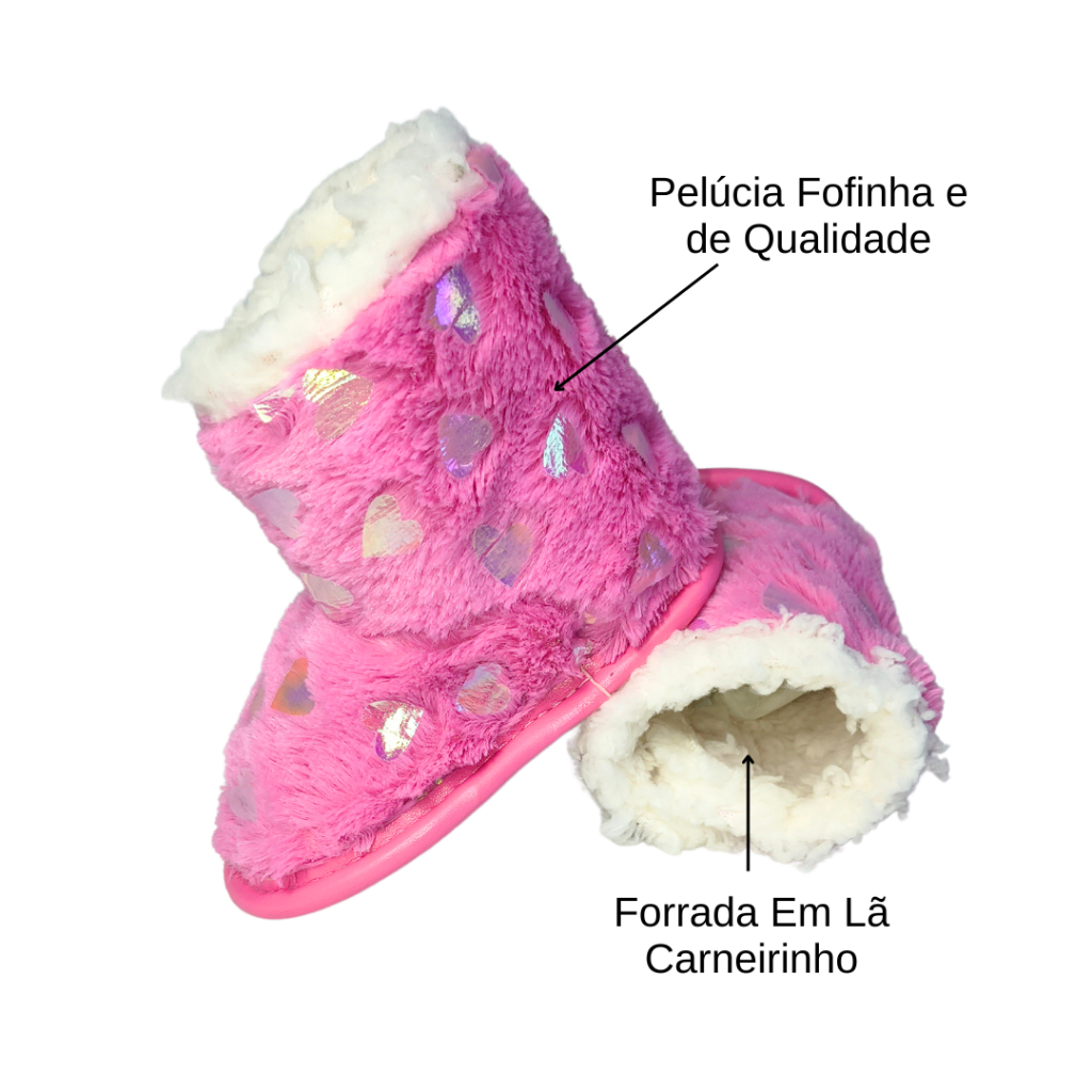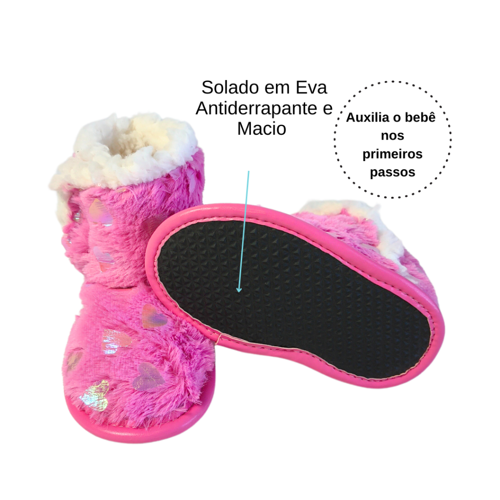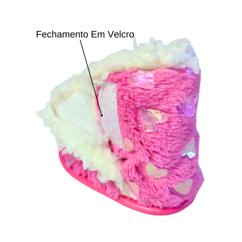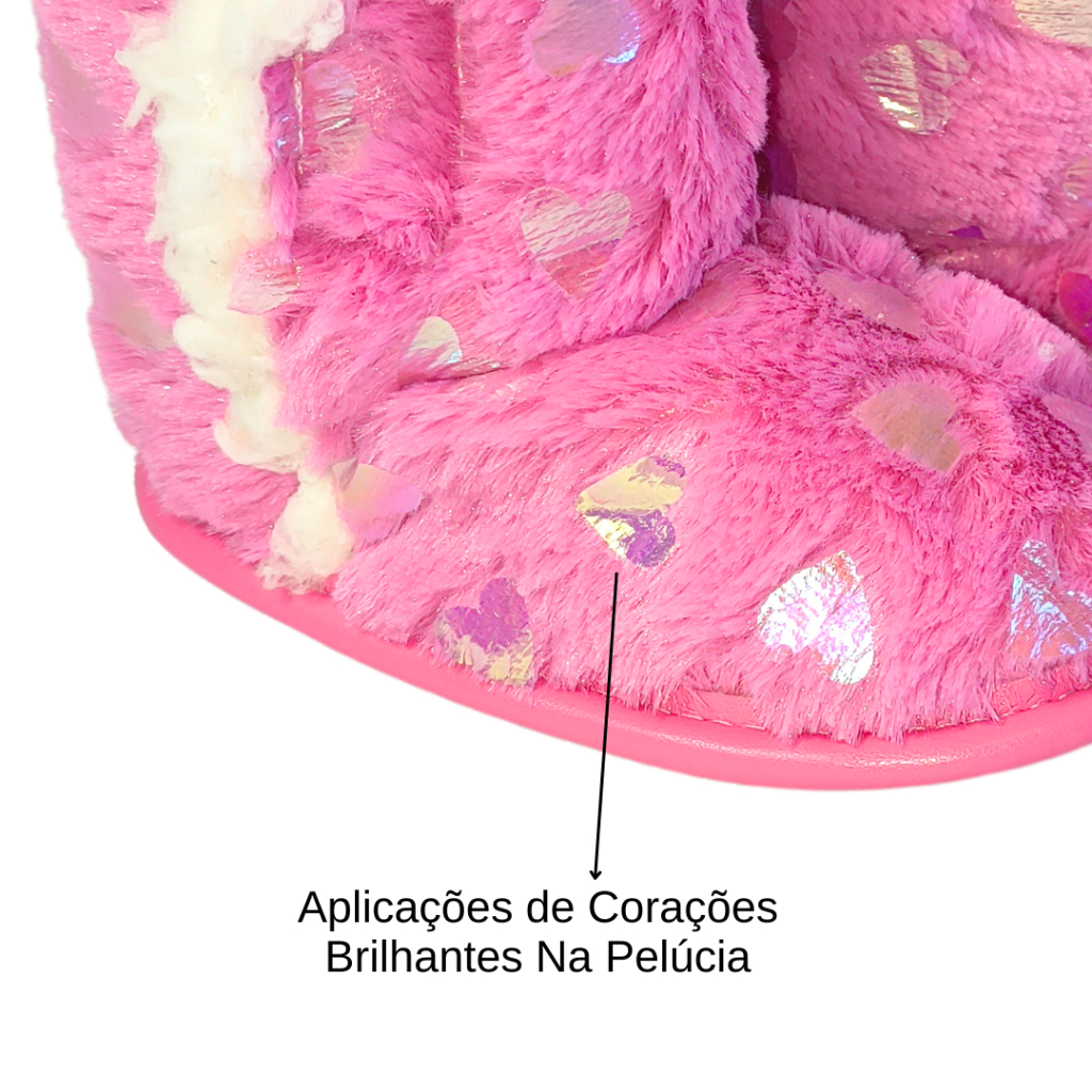 Pantufa Botinha Bebê e Infantil Menina 13/14 ao 23/24 Pelúcia Coração