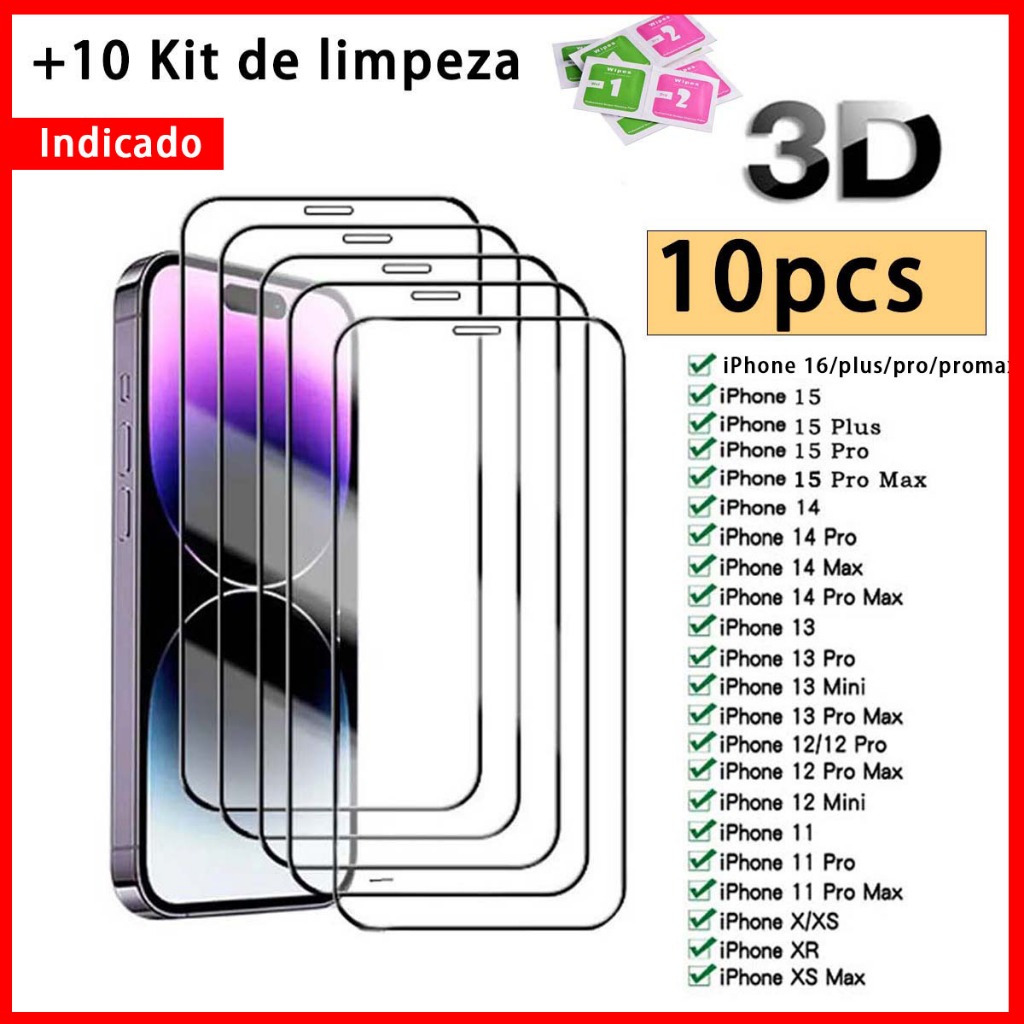 Kit 10 Película De Vidro Temperado 9H Para iPhone X Xs Xr 11 Pro Max 12 13 14 15 16 Pro Max