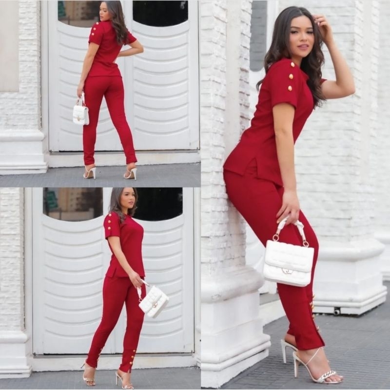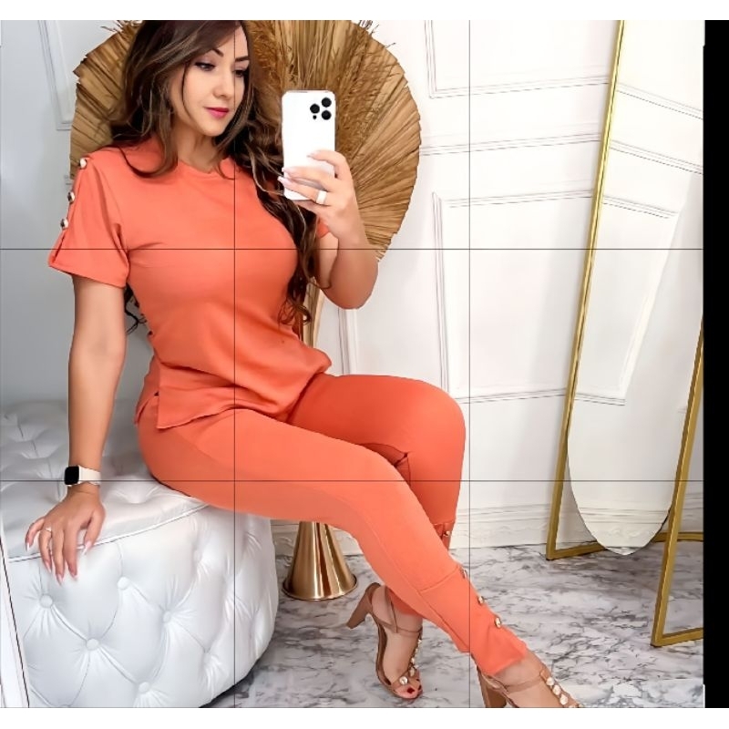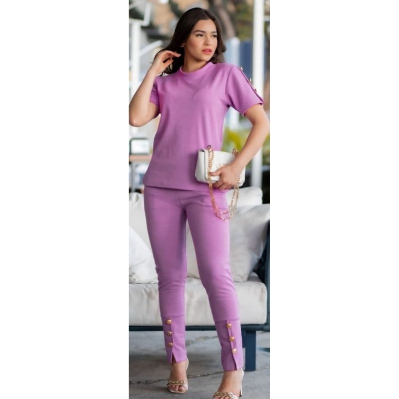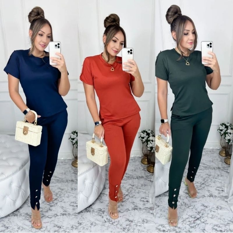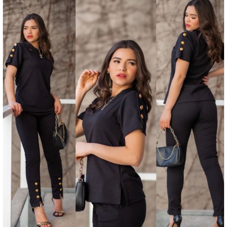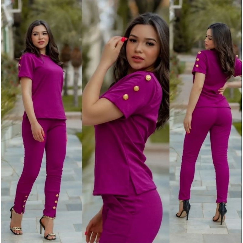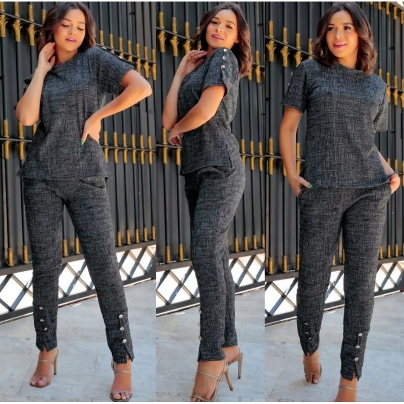 Conjunto Feminino De Calça E Blusa De Mulher Super Elegante Jacquard