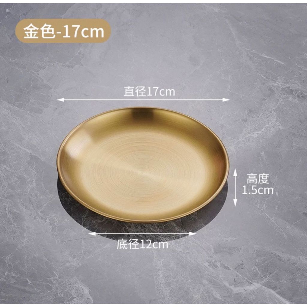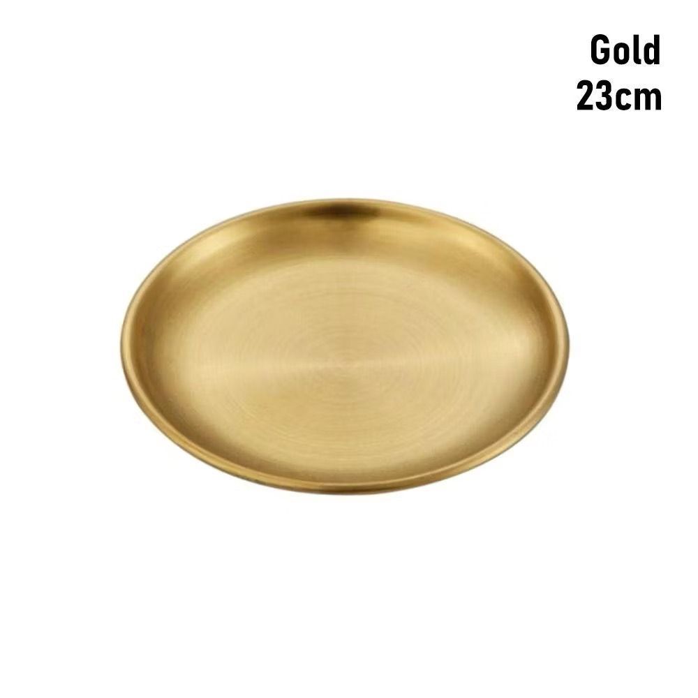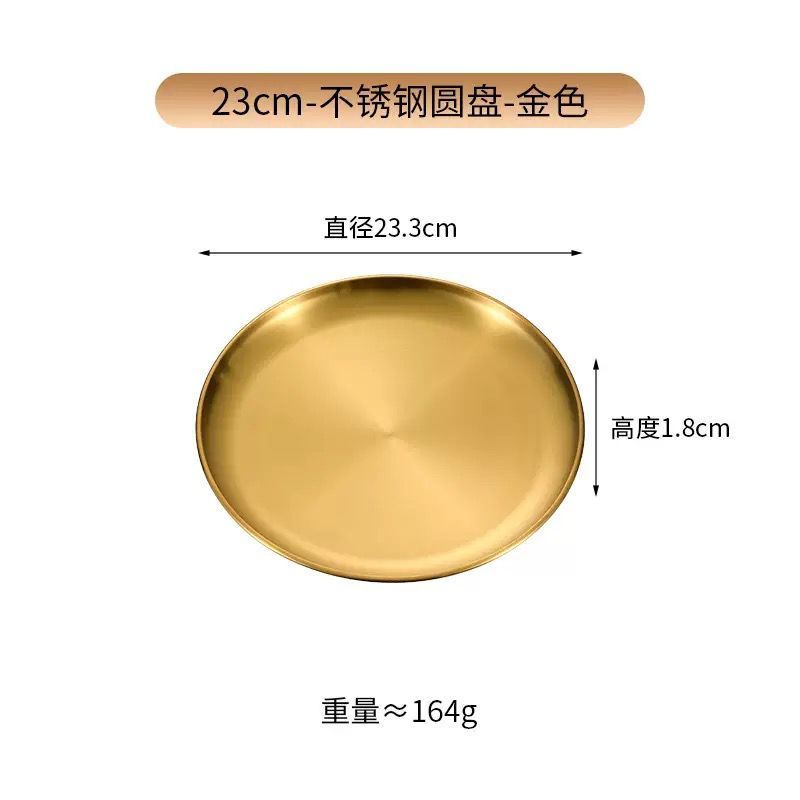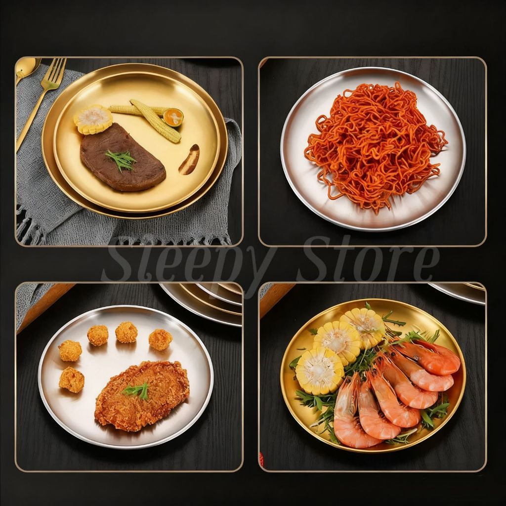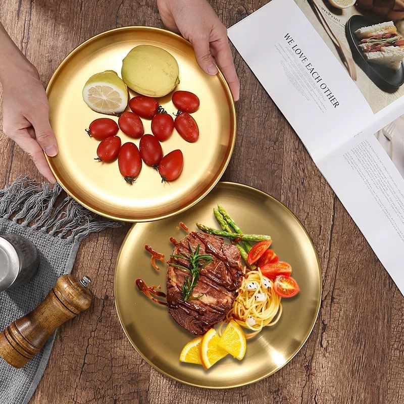 Bandeja Aço Inoxidavel Luxo Alimentos Dourado Redondo Para Churrasco Espaguete Bife Frutas