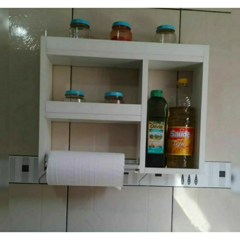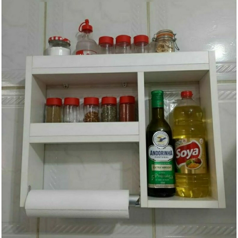 NICHO BRANCO DE COZINHA PARA TEMPEROS COM SUPORTE PARA PAPEL TOALHA 100% MDF FABRICAÇÃO PROPRIA