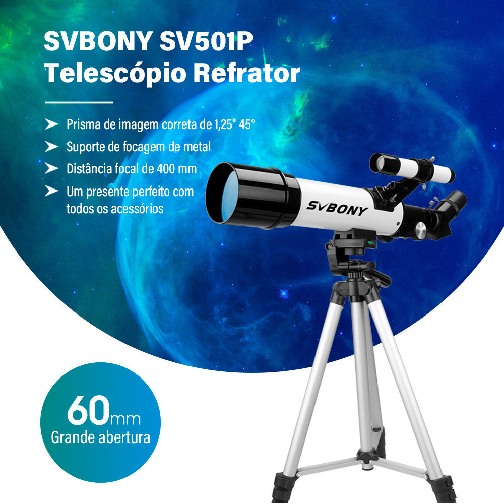 SVBONY SV501P Telescópio astronômico refrator portátil para iniciantes com tripé e mochila Vidro revestido
