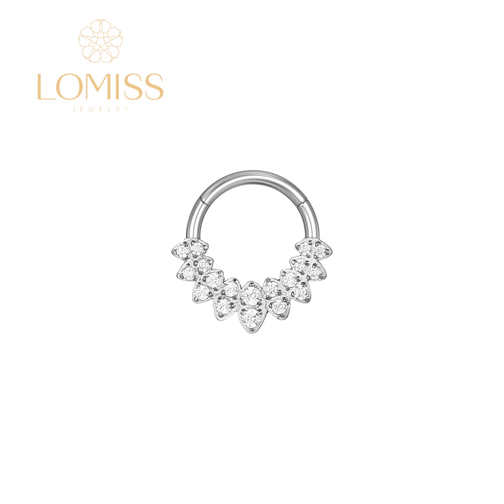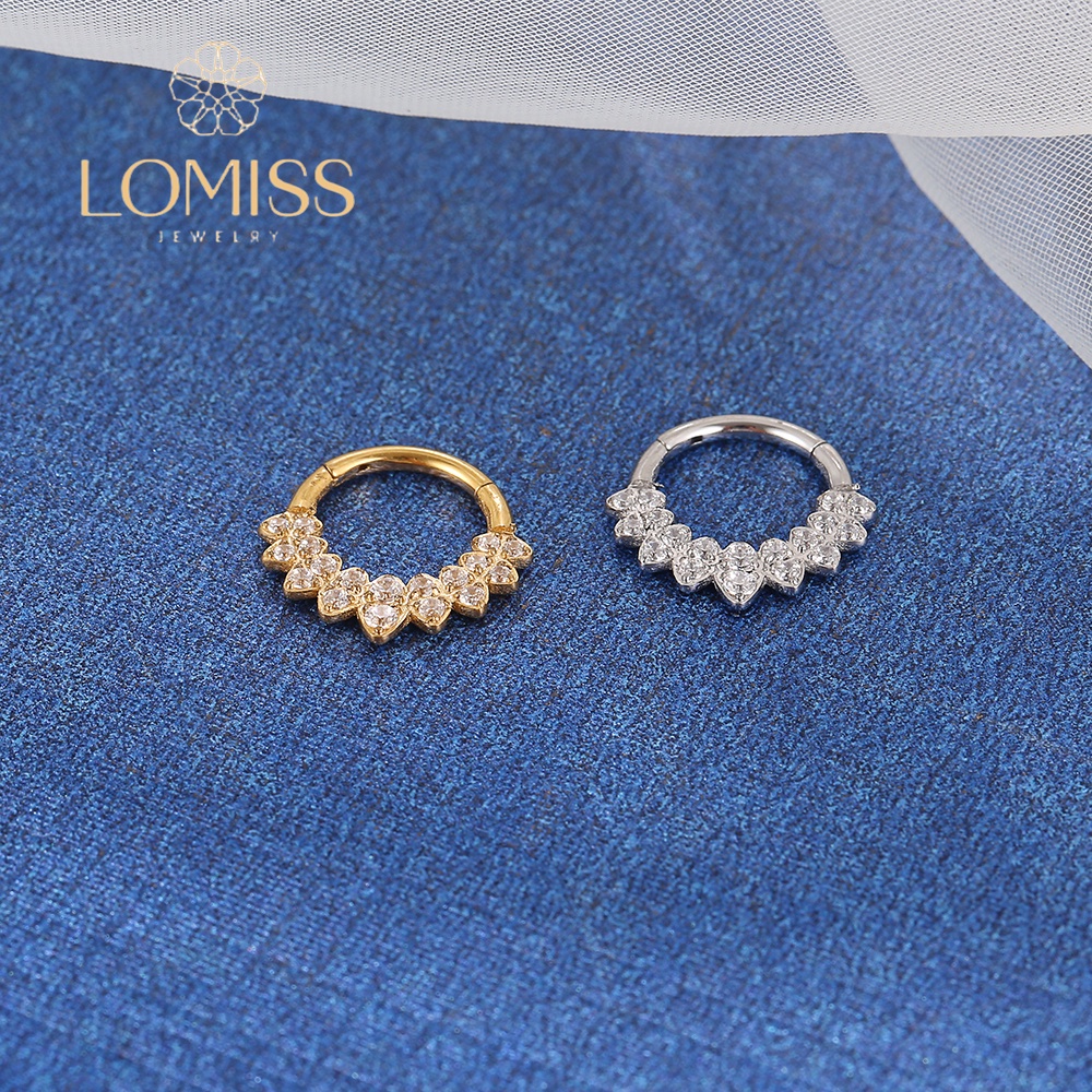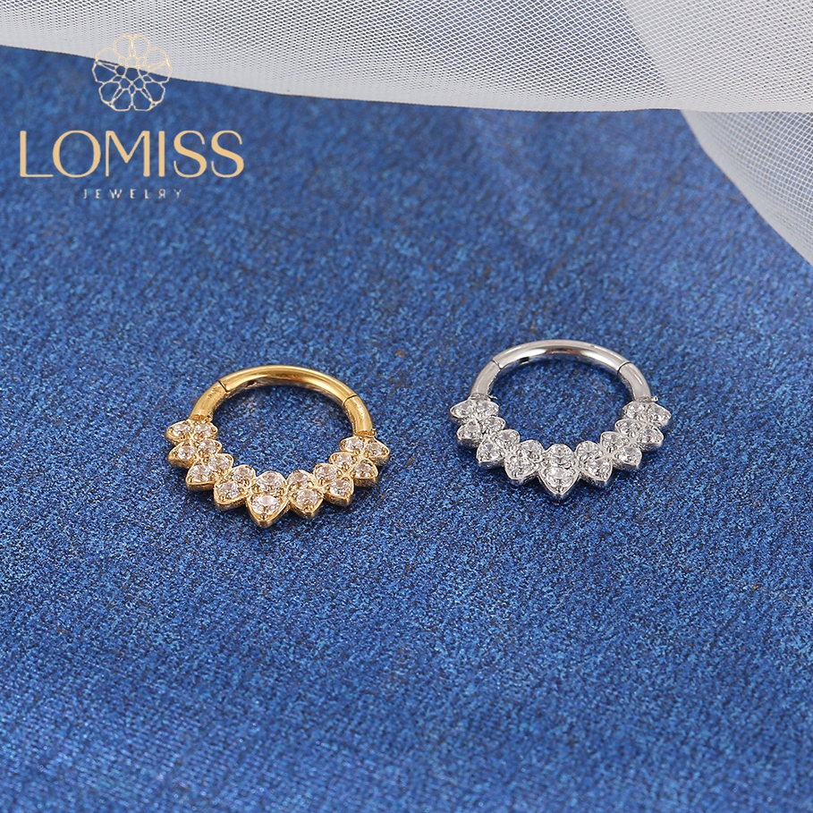 Piercing Argola Clik Aço Cirúrgico PVD Detalhado Zircônia Cravejada《Lomiss semijoias》