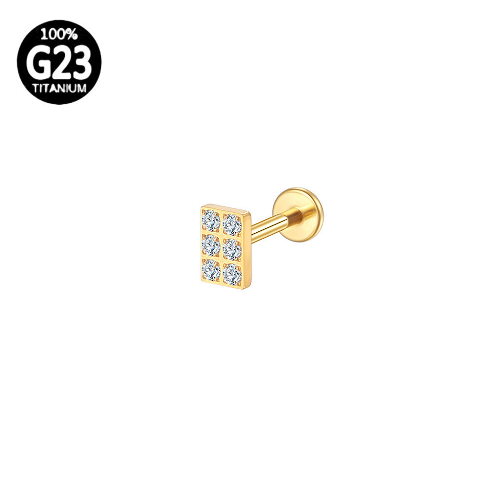 【LOMISS】Piercing Helix Tragus Conch Labret Titânio Pvd Quadrado Zircônias Cravejadas 1,2x8