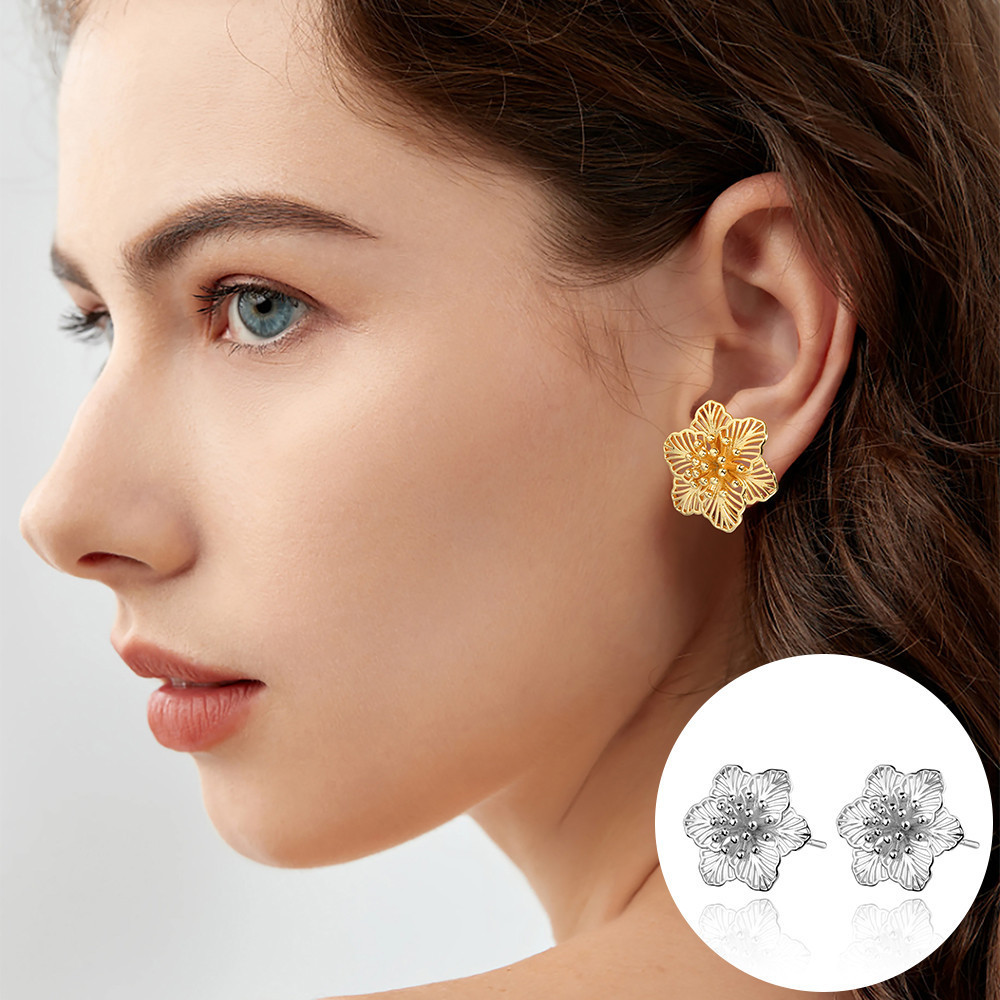 Brinco Delicado Elegante Antialérgico Femininos Chique Coreanos Flor Vazado Folheado Platina
