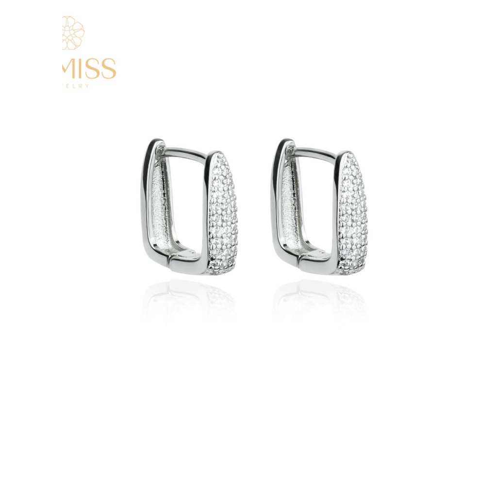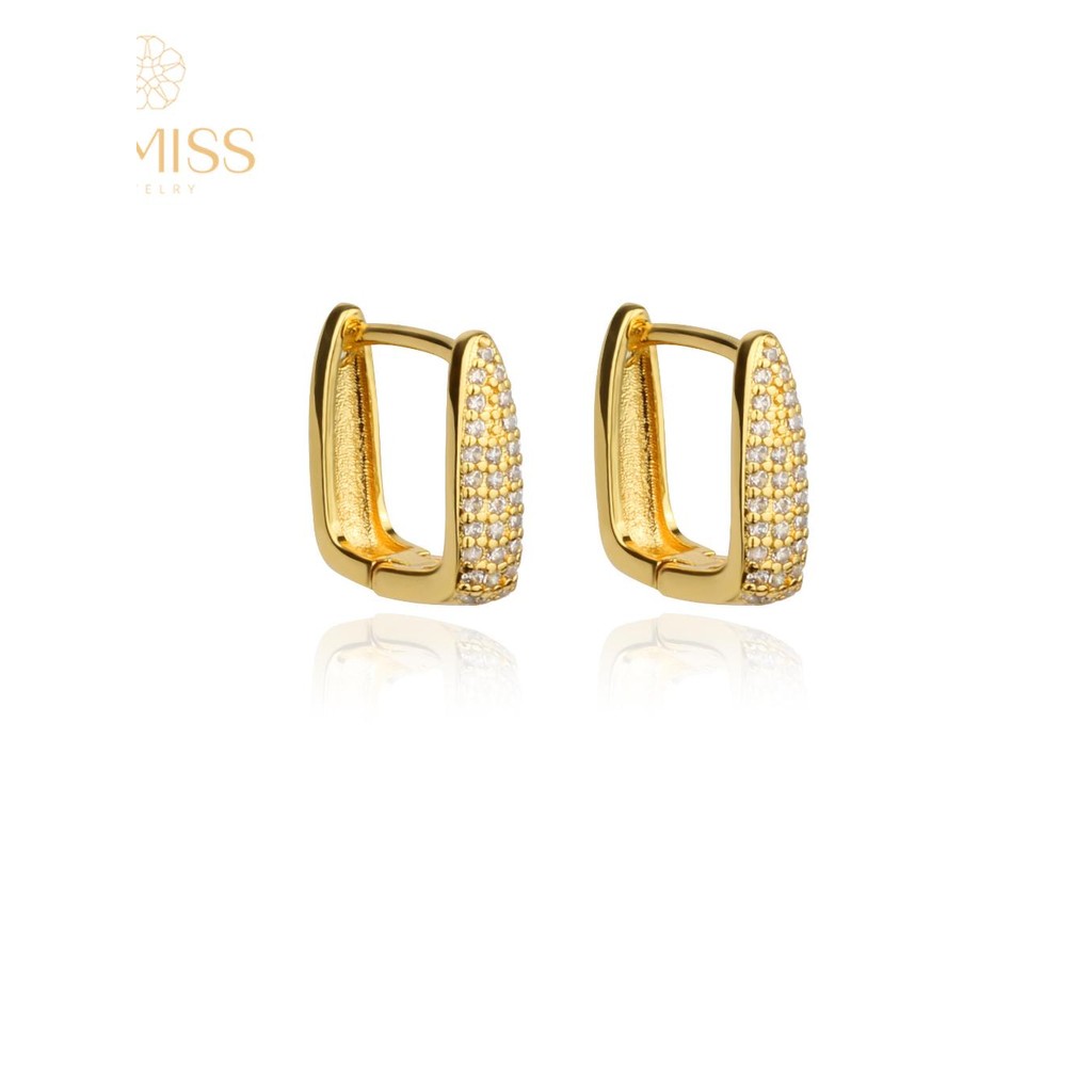 Argola Delicado Elegante Antialérgico Folheado Ouro 18k a Platina Quadrada 3 Fileira Zircônia Cravejada