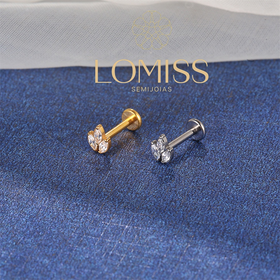 Piercing Helix Tragus Conch Labret Titânio Trio Zircônias Cravejadas 1,2x8
