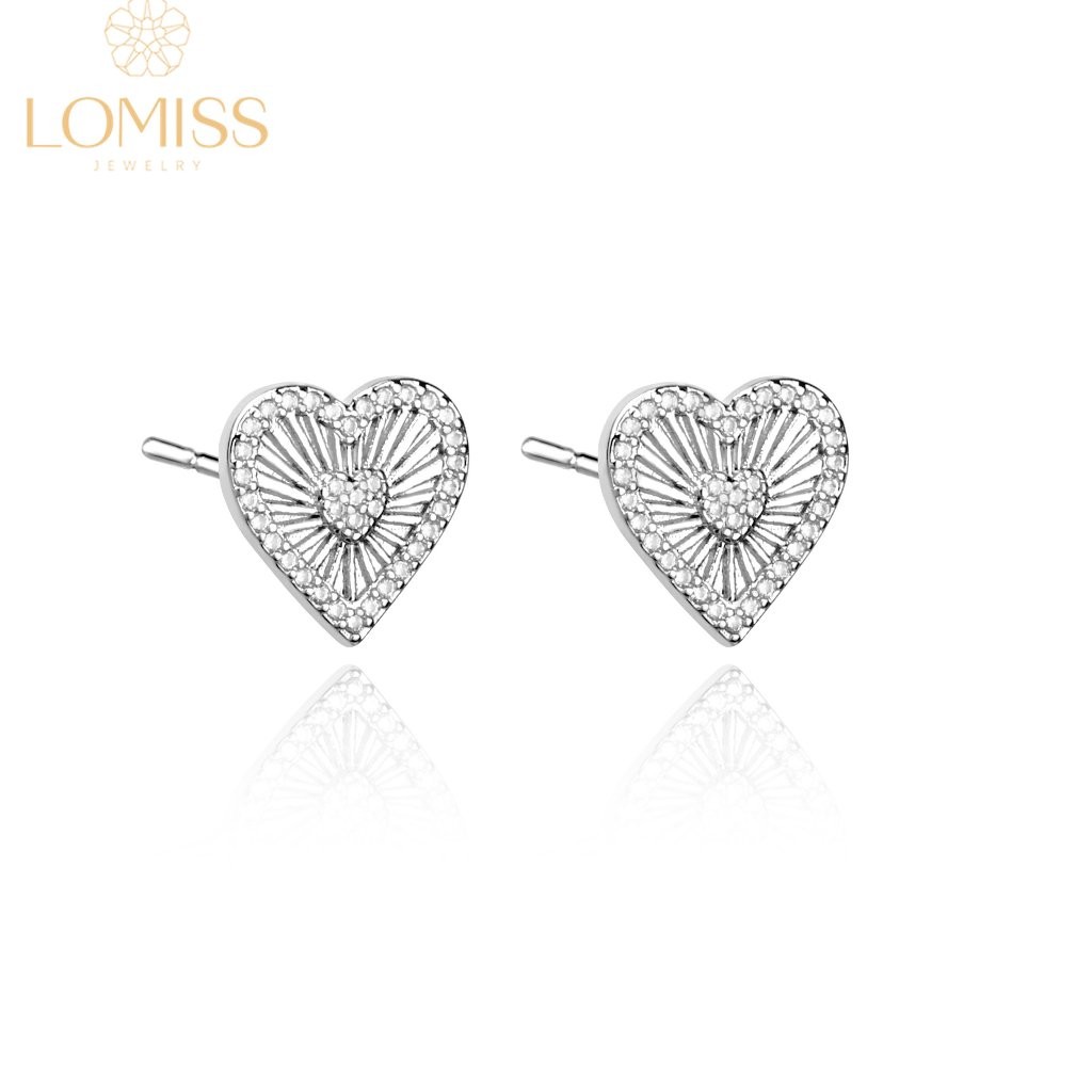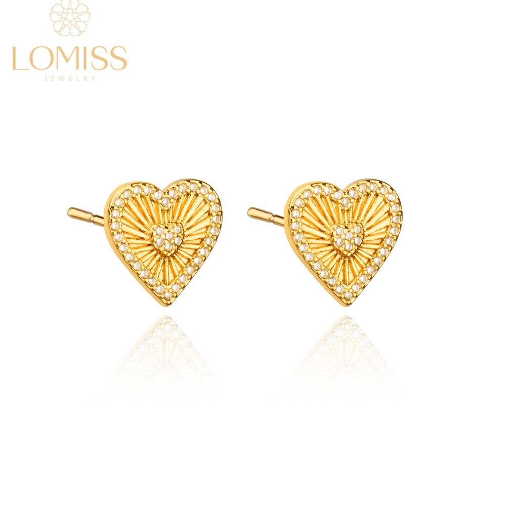 Brinco Delicado Femininos Minimalista Coração Detalhado Folheado Ouro 18k a Platina Zircônia Cravejada