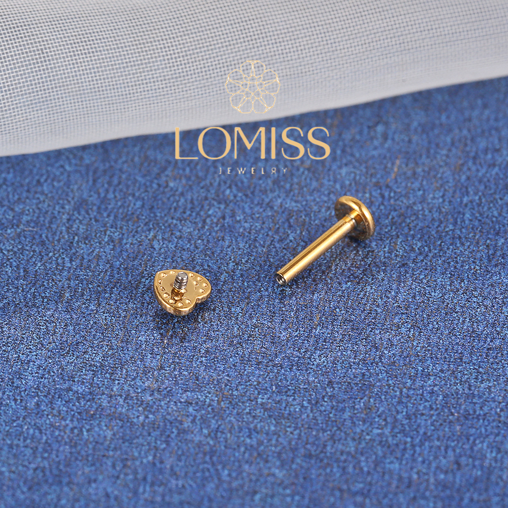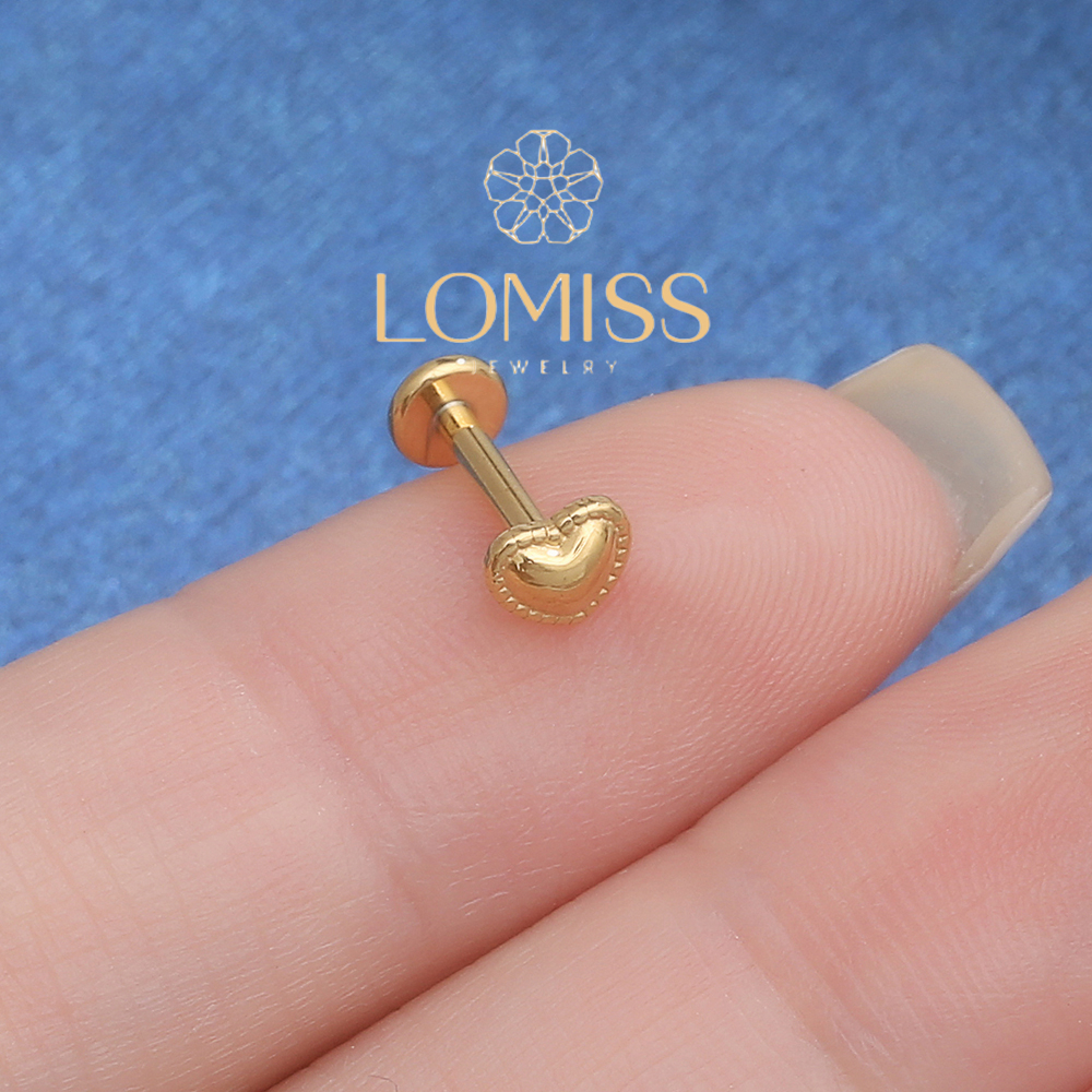 Piercing Helix Tragus Conch Boca-Medusa Labret Aço Cirúrgico Pvd Coração 1,2x8