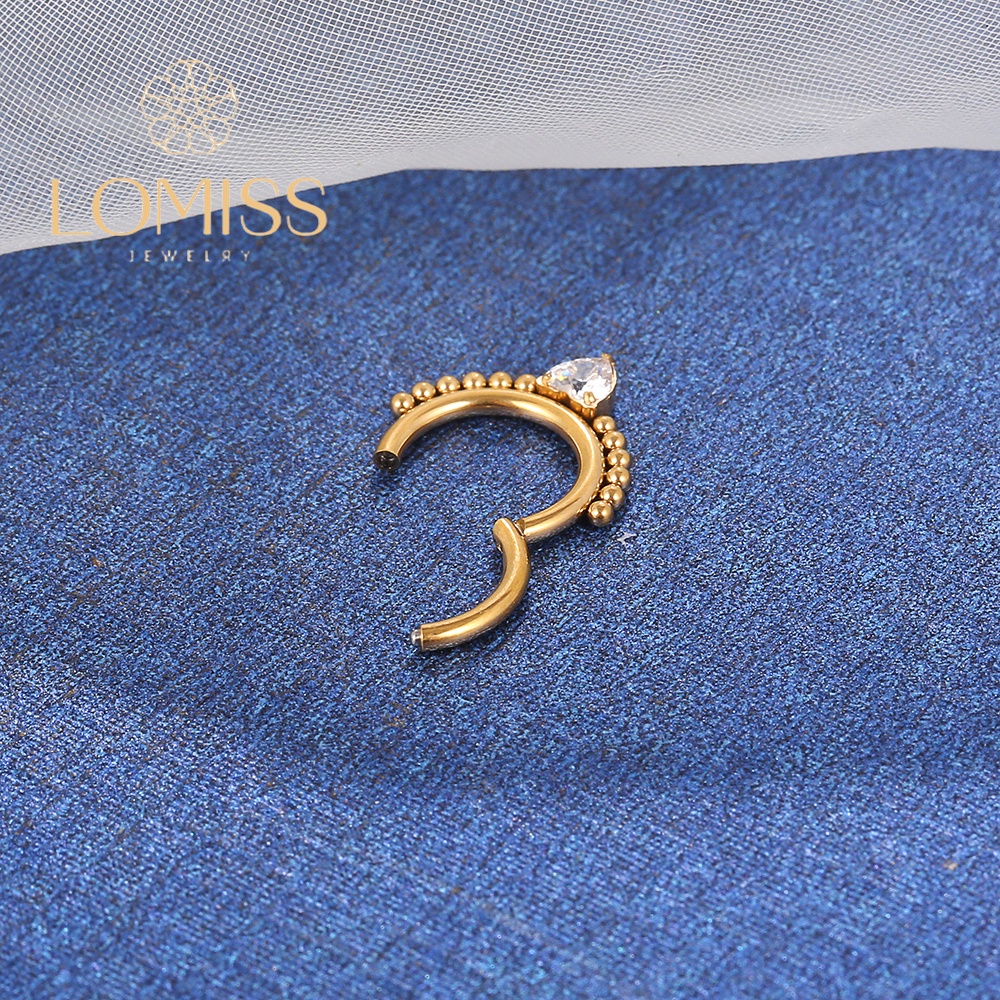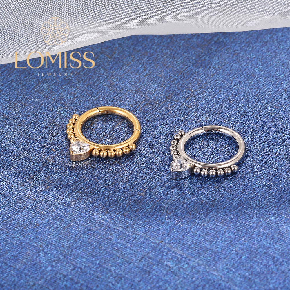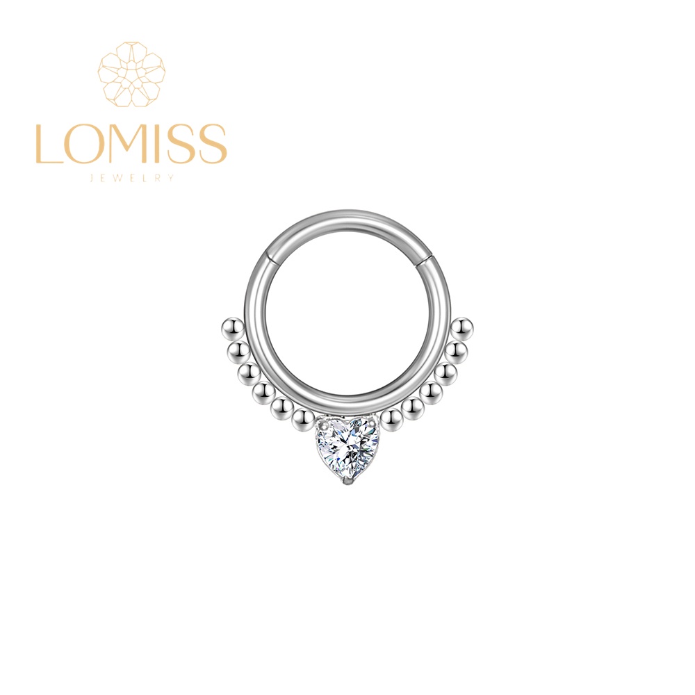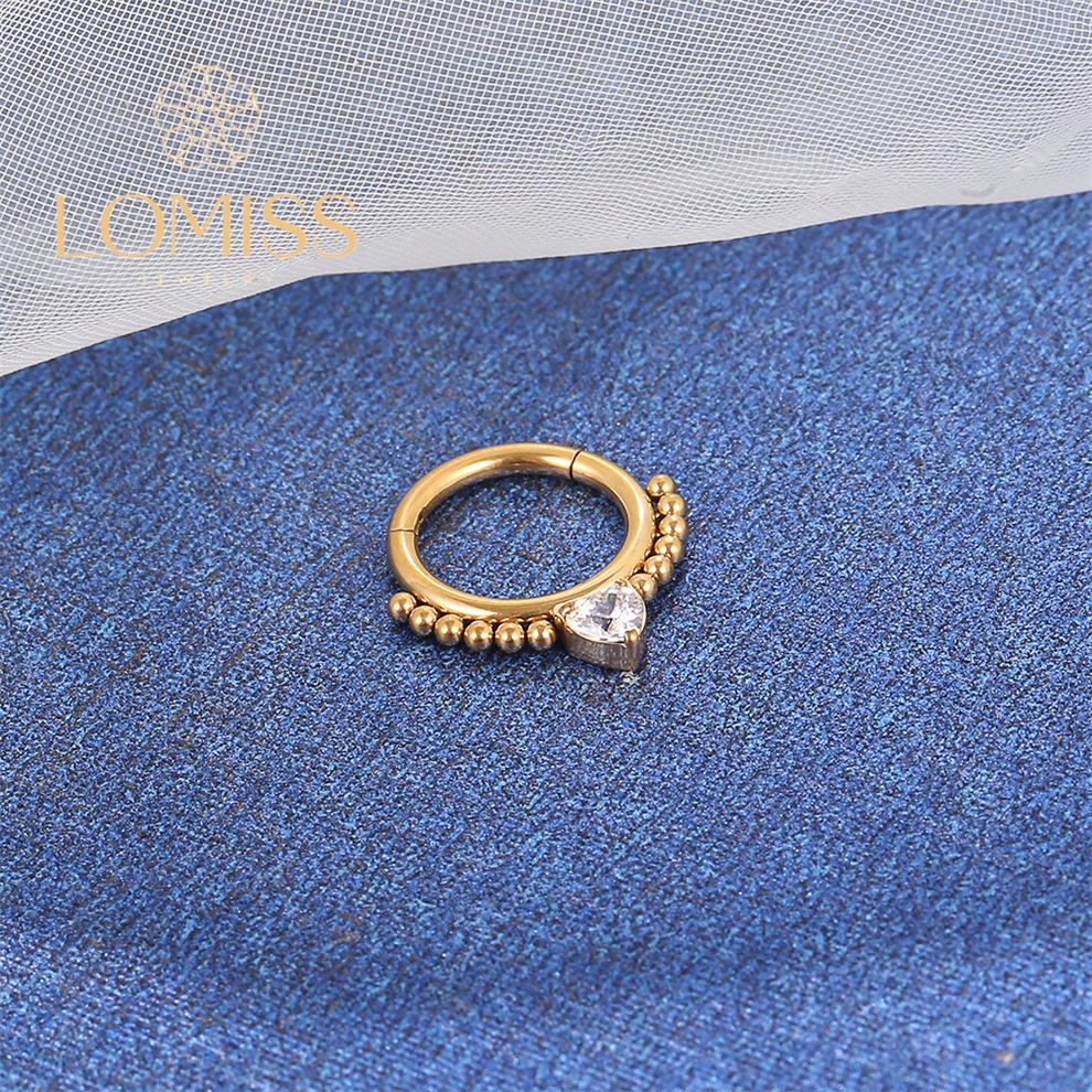 Piercing Argola Aço Cirúrgico PVD Segmento Articulado Bolinhas Zircônia Coração Cravejada《Lomiss semijoias》