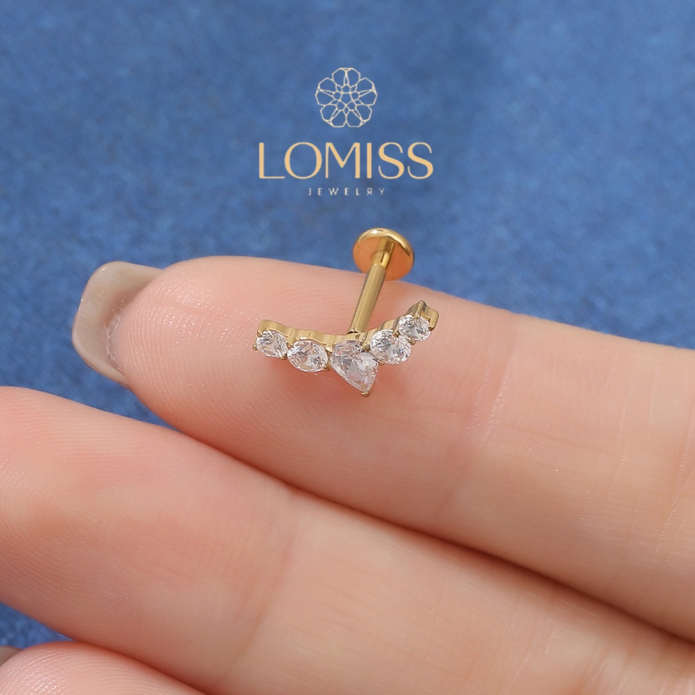 Piercing Helix Tragus Conch Labret Titânio G23 Cluster 5 Zircônias Lomiss piercing