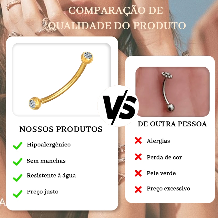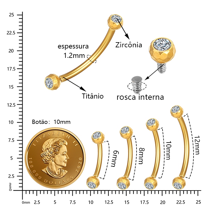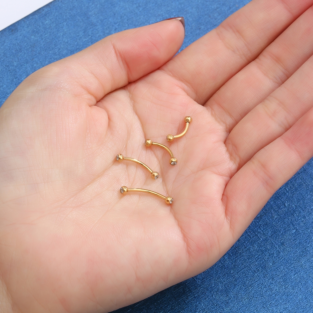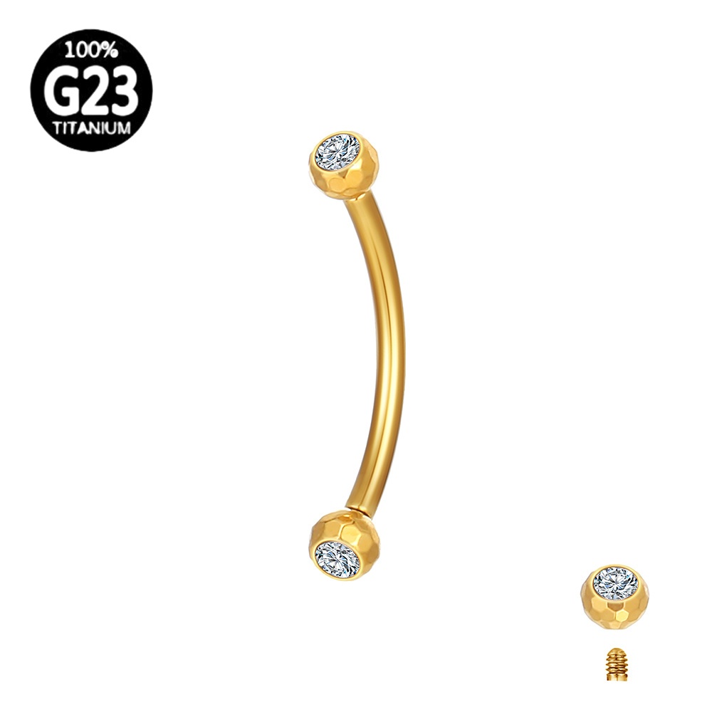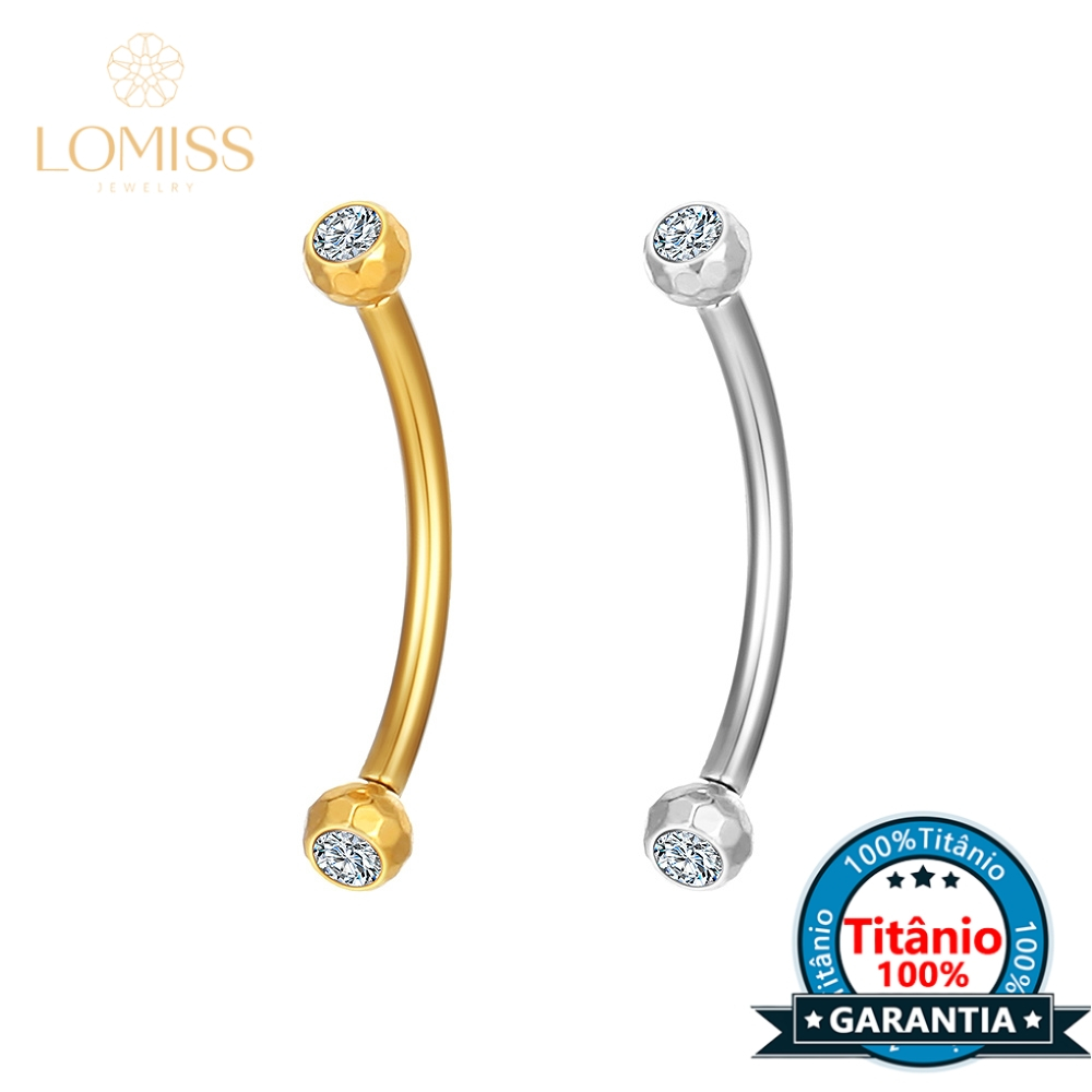 Piercing Sobrancelha Rook Barbell Curvo Titânio Pvd Lapidada Zircônia Cravada Rosca Externa