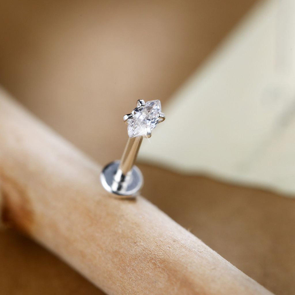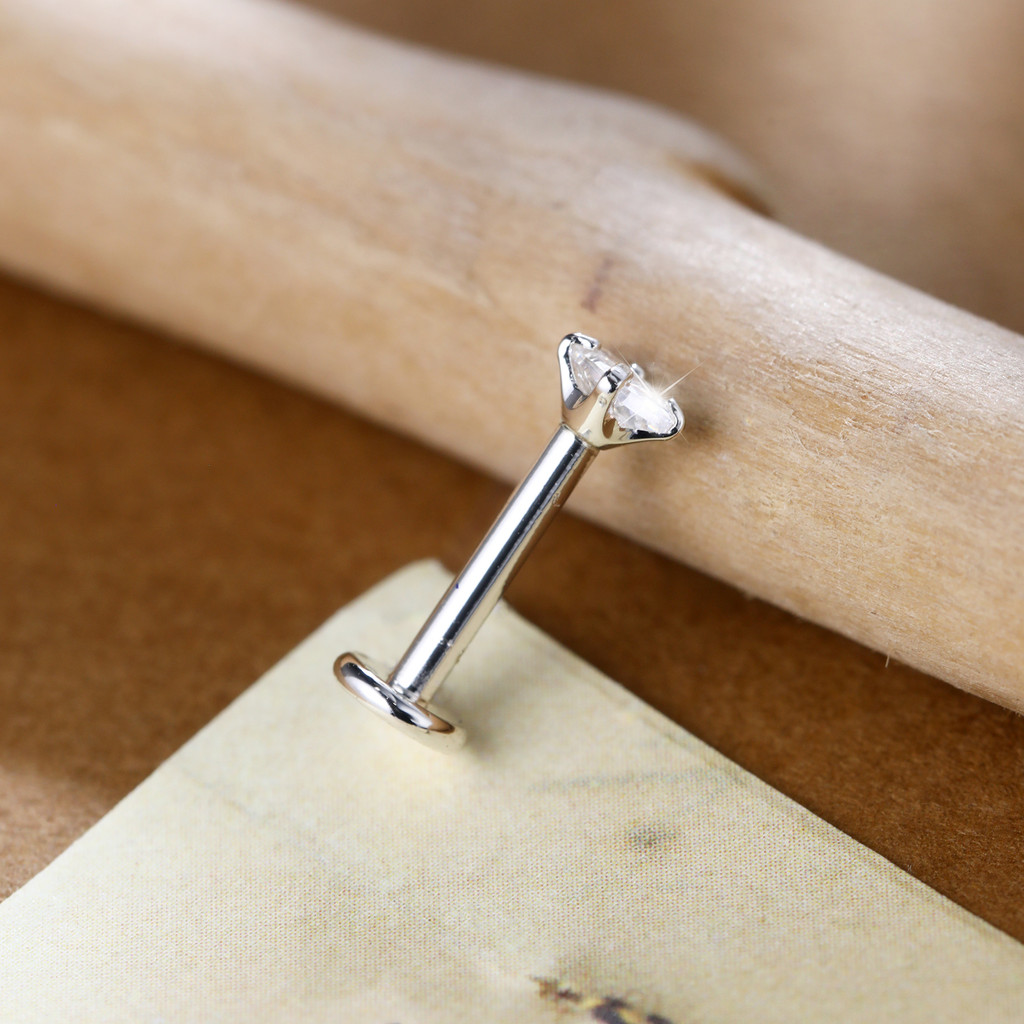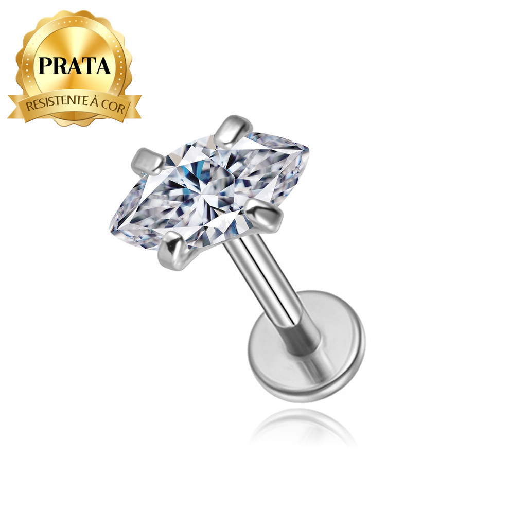 Piercing Labret Prata 925 Oval Com Pontas Ponto De Luz Grau de Implante Helix Tragus Conch Boca Orelha