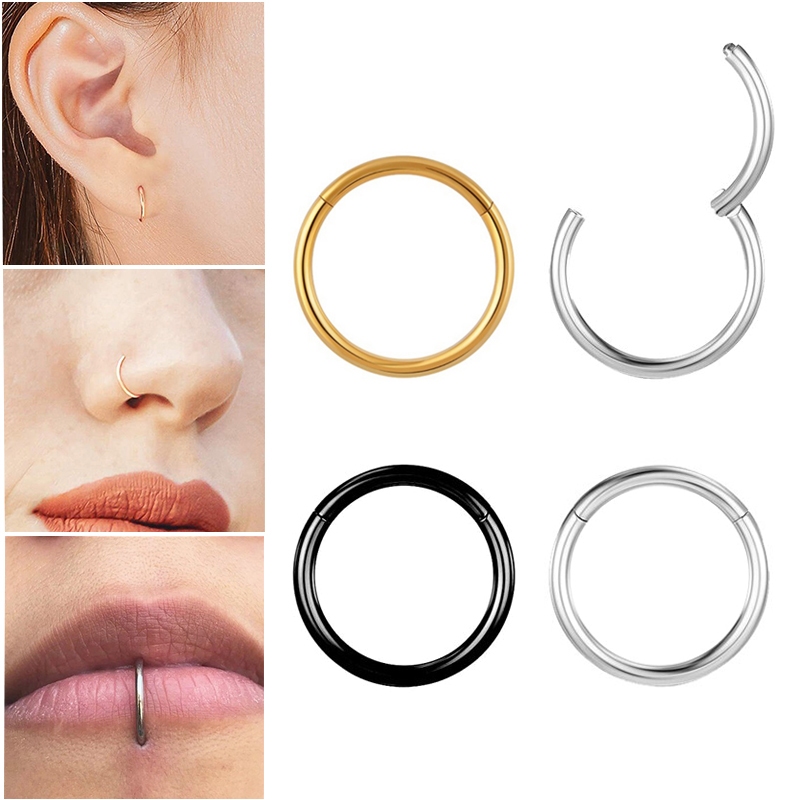 Piercing Conch Nariz Aço Cirúrgico 6-12mm Click PVD Segmentada Grau de Implante Hipoalergênico Piercing Argola