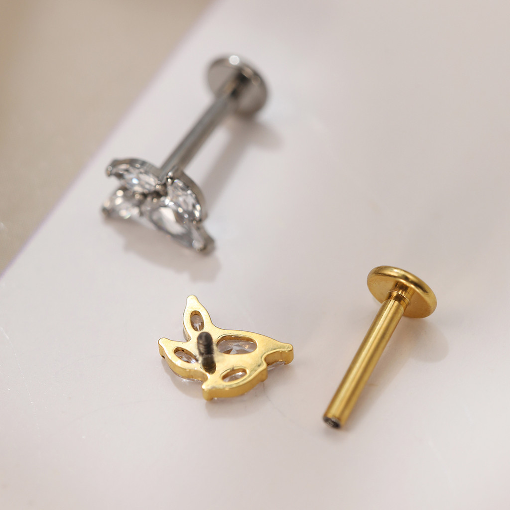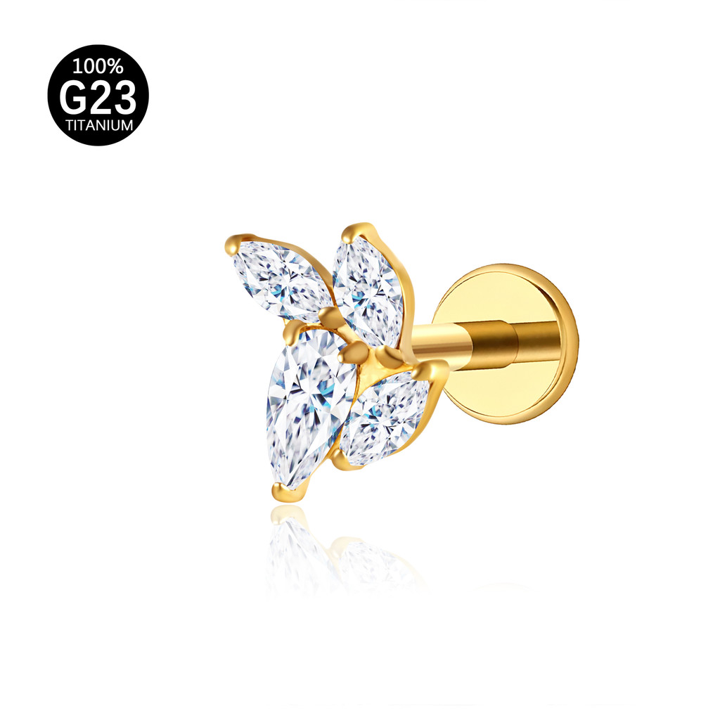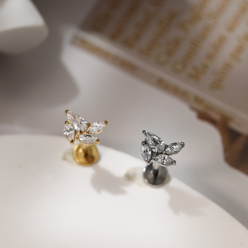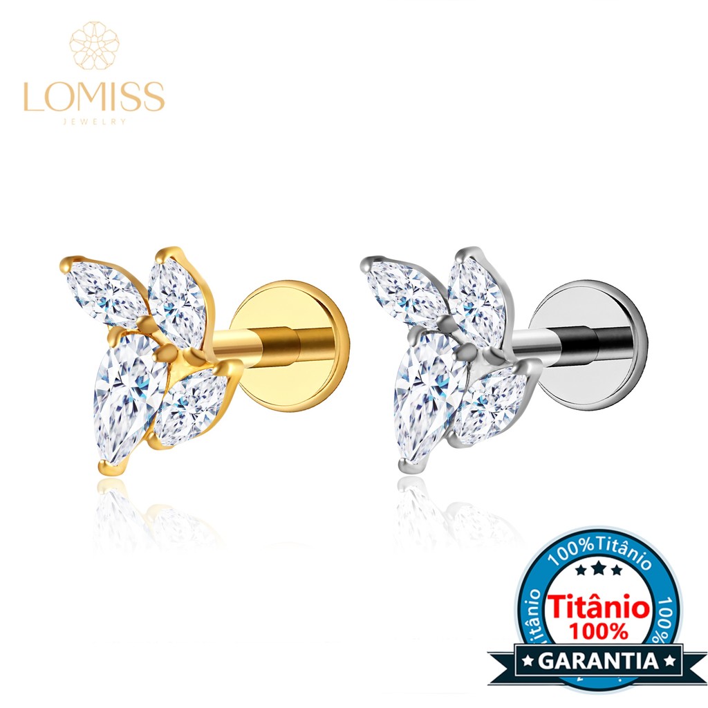 Piercing Labret Titânio Orelha Nariz Tragus Zircónia Cravejada 4 Pedras