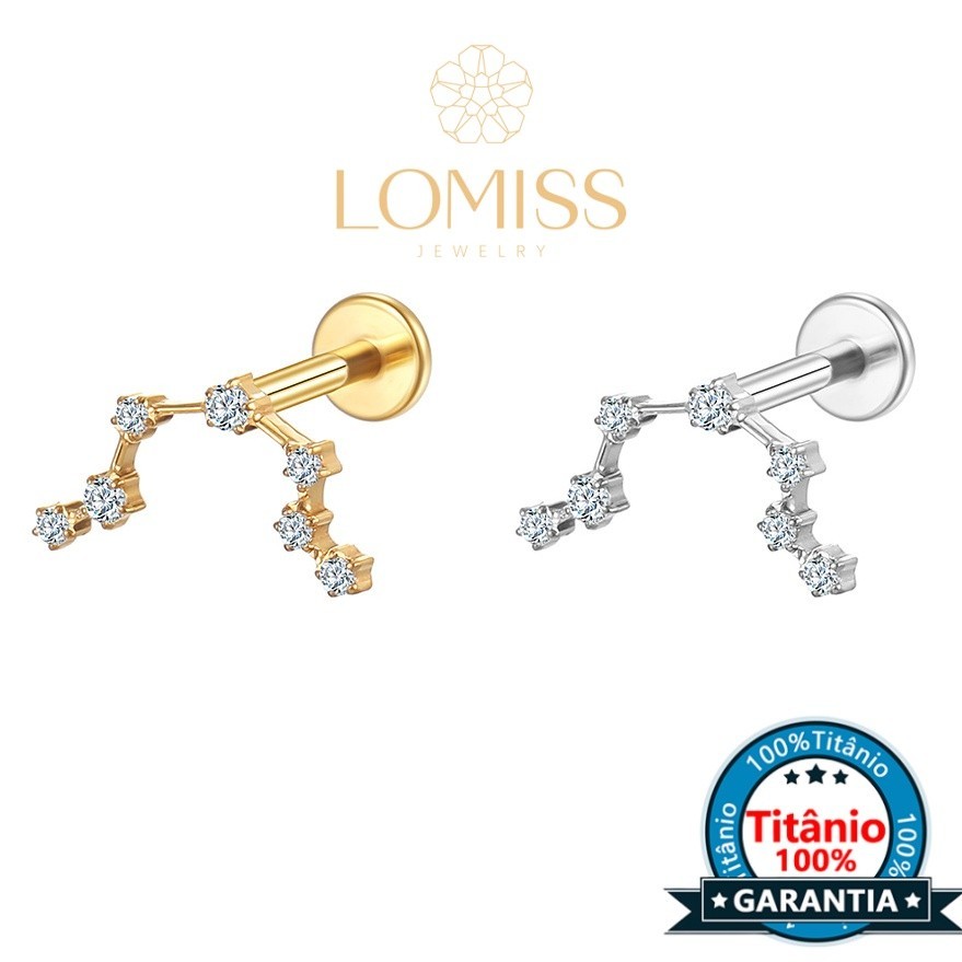 【Lomiss】Piercing Orelha Conch Tragus Labret Titânio 7 Zircônias Cravejada