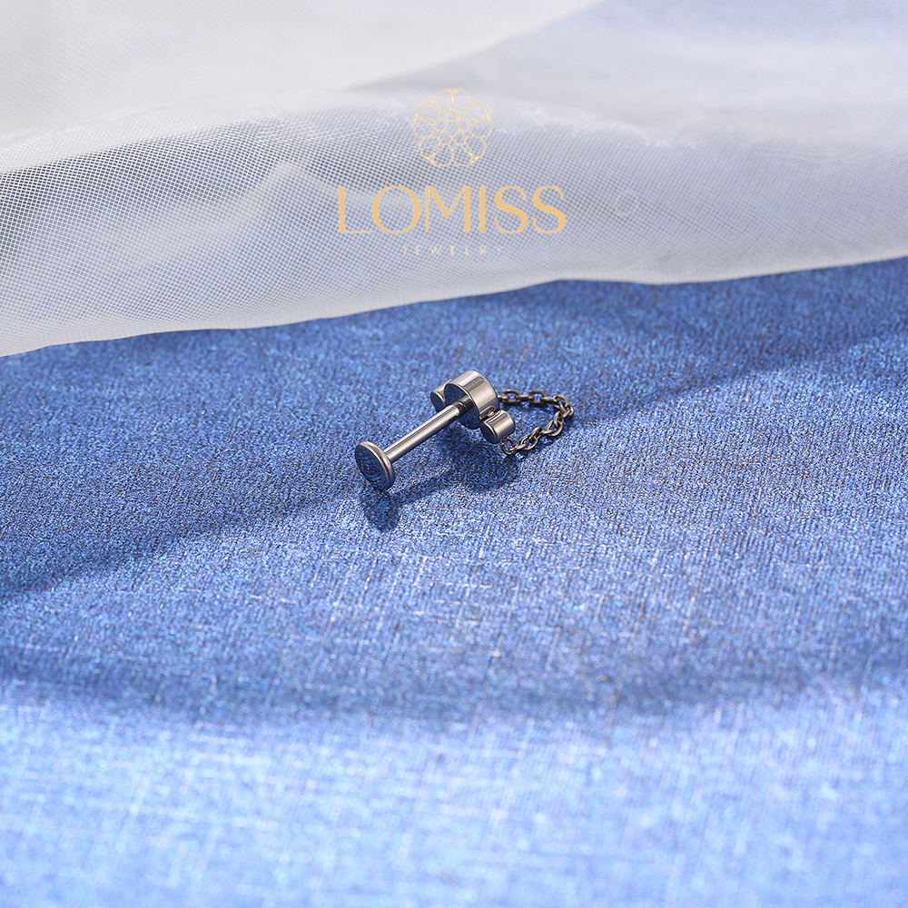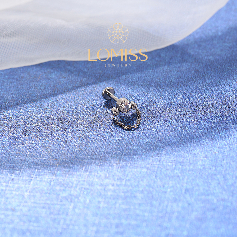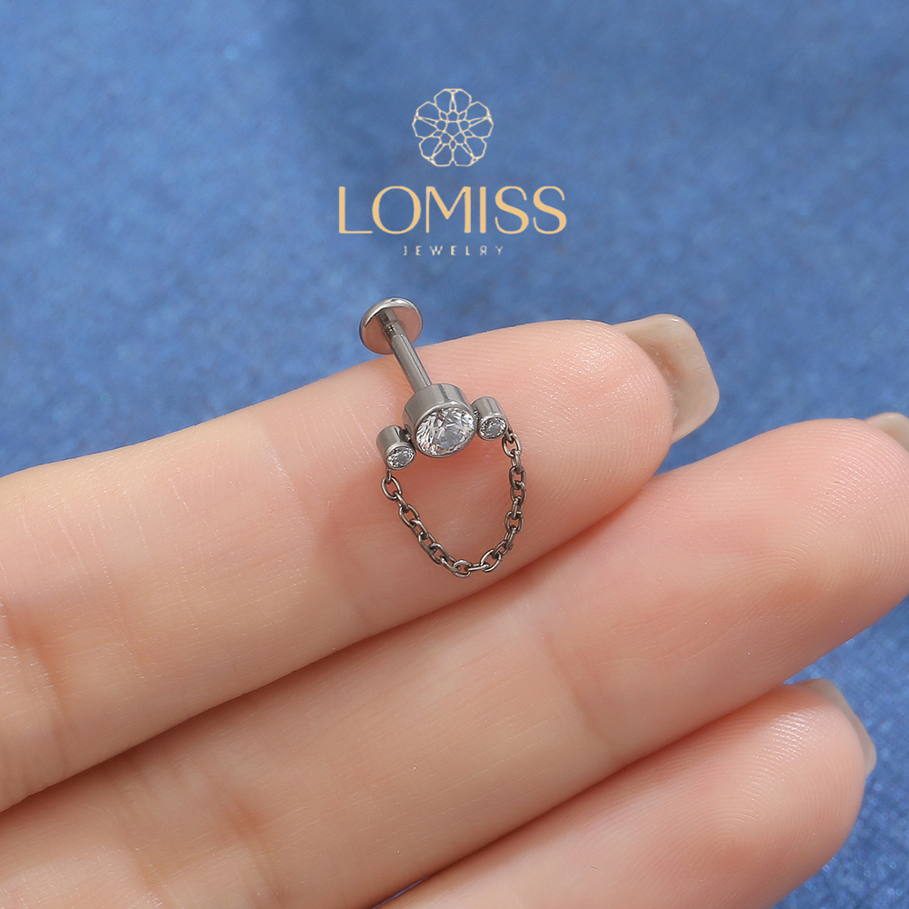 Piercing Labret Helix Tragus Conch Boca-Medusa Titânio 3 Zircônias Com Corrente Lomiss piercing