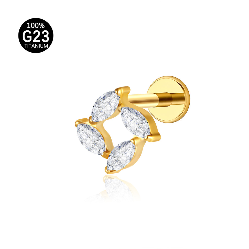 Piercing Labret Titânio Helix Tragus Conch 4 Pedras Zircônia Cravejada
