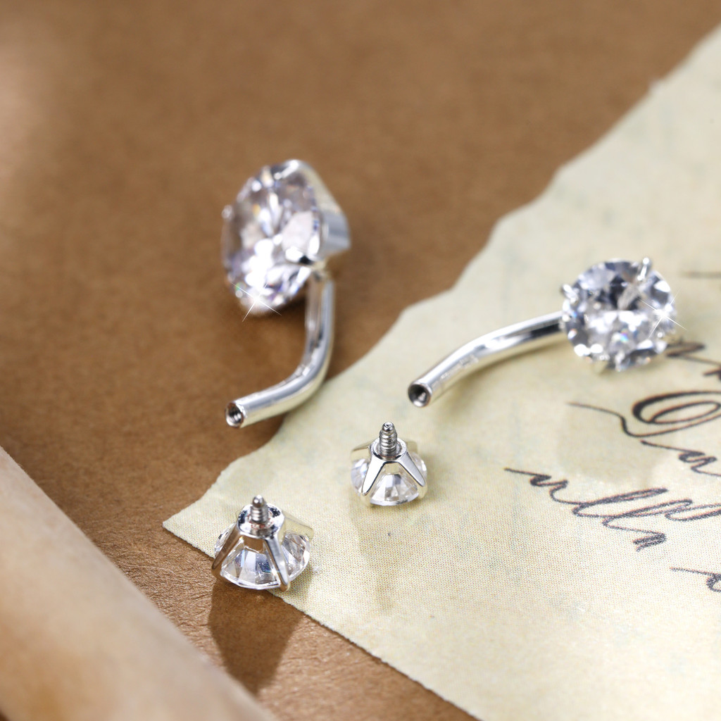 Piercing Umbigo Banana Prata 925 2 Pedras Zircônia Cravejada