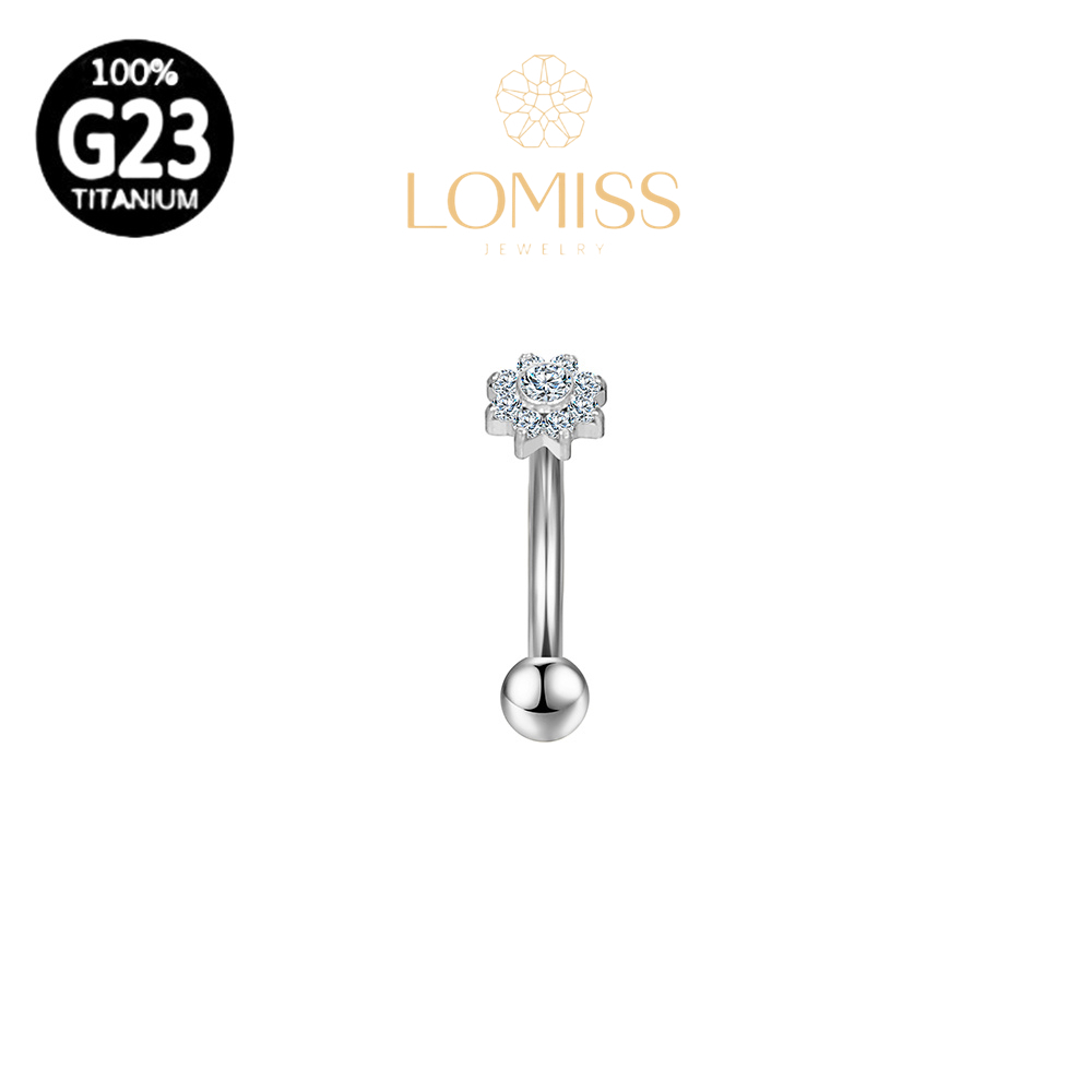 Piercing Helix Flat Conch Tragus Lóbulo Minibarbell Curvo Titânio Flor 9 Zircônias