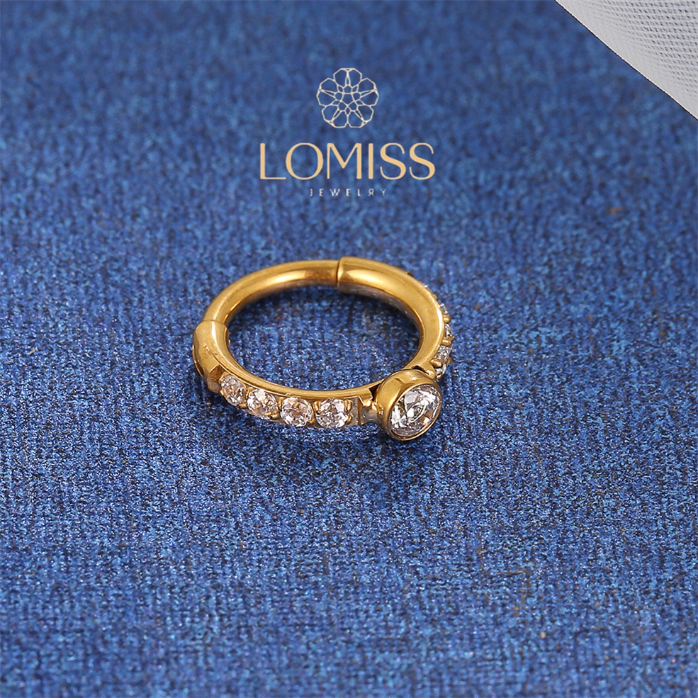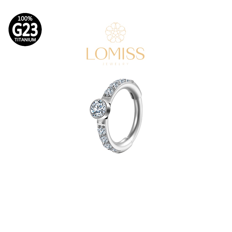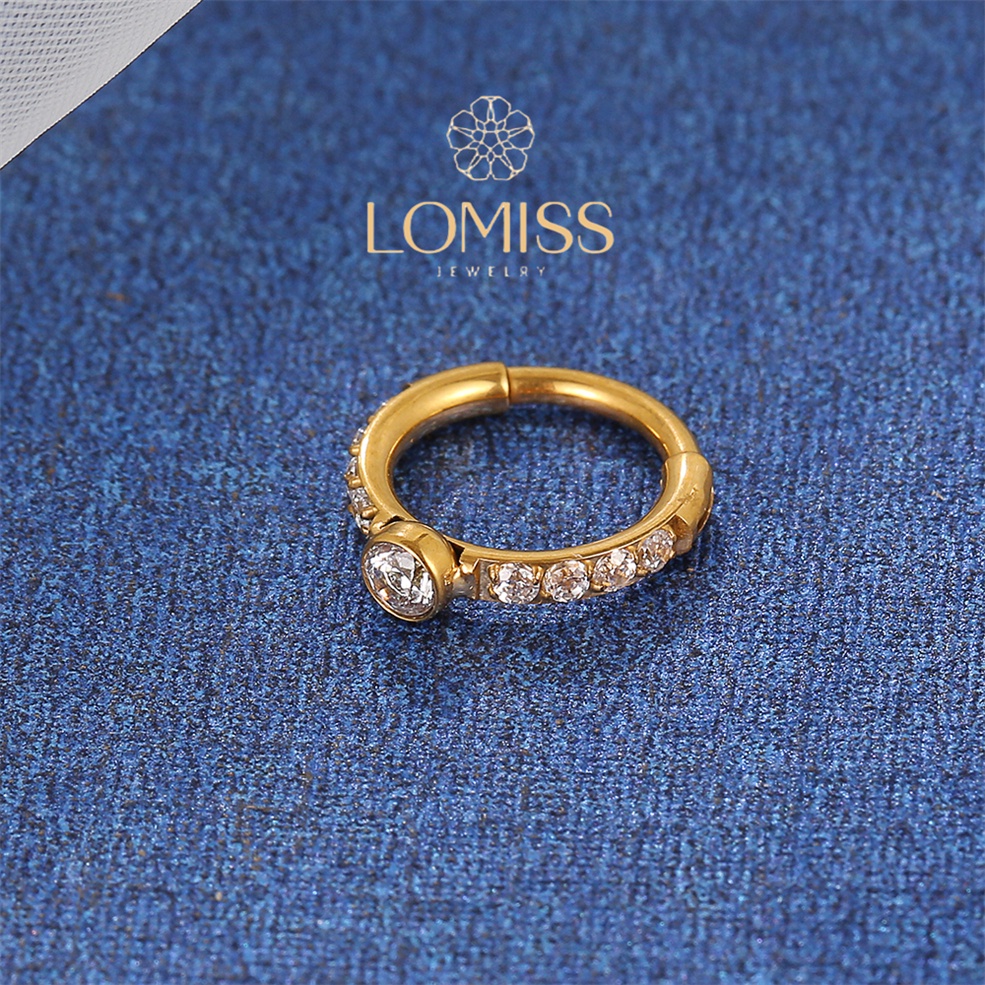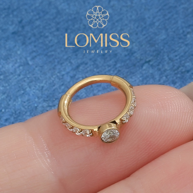 Piercing Helix Conch Argola Titânio PVD Clik zircônia Redonda Cravejada