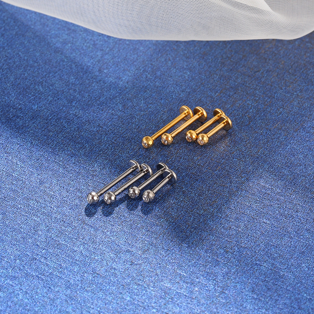 Piercing Helix Conch Labret Titânio Pvd Lapidada Com Zircônia Ponto de luz Rosca Externa