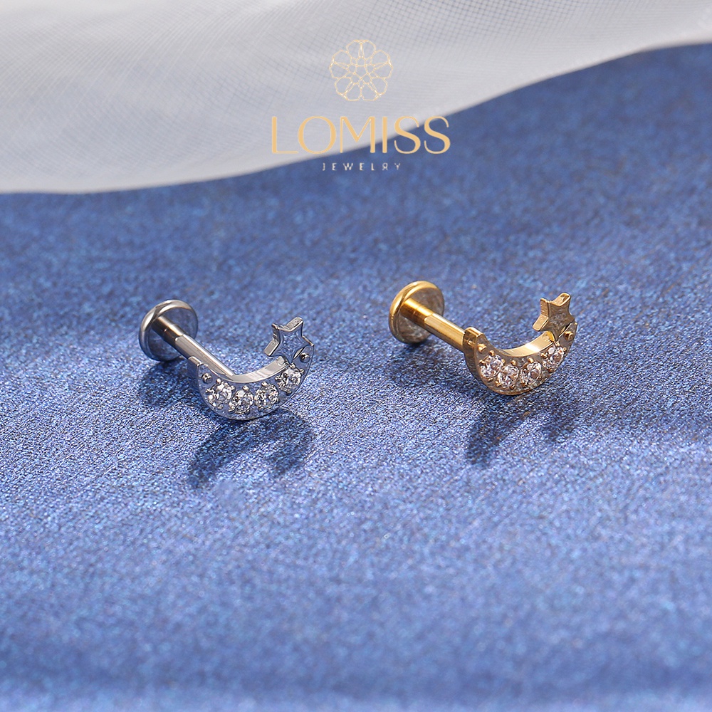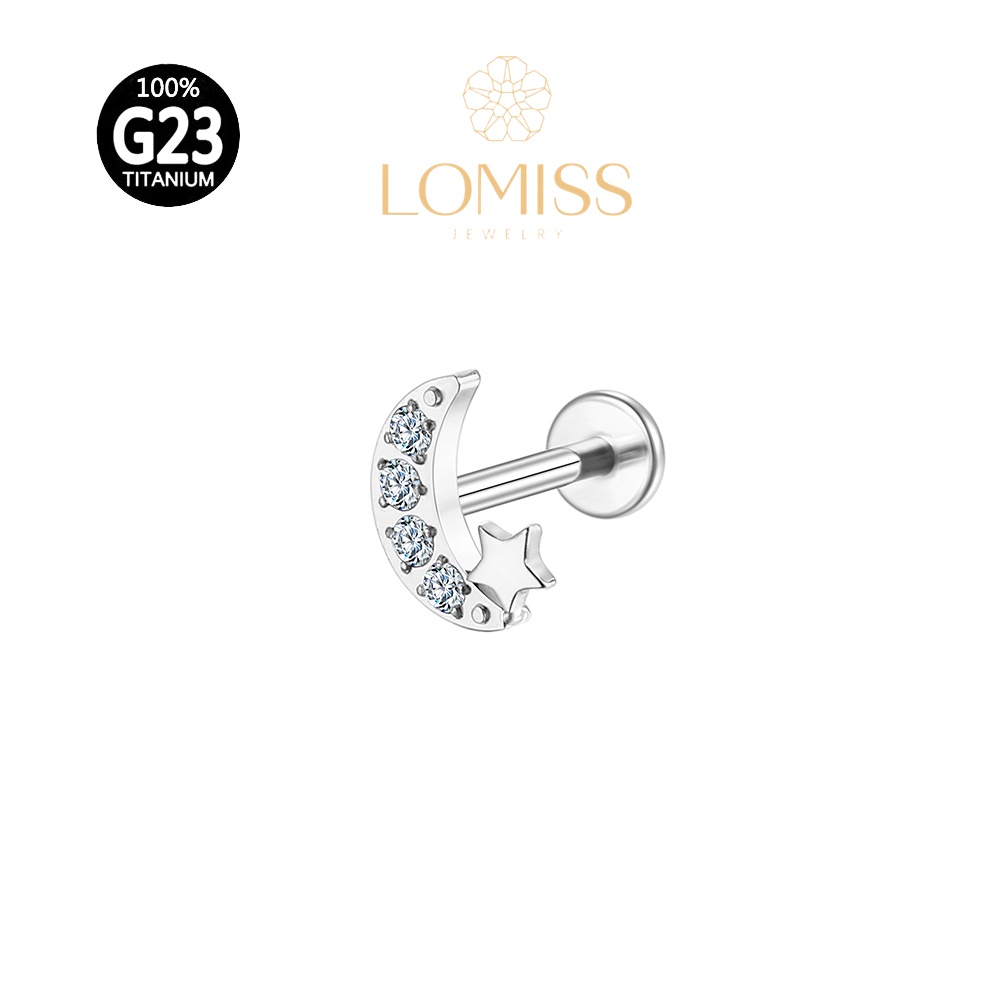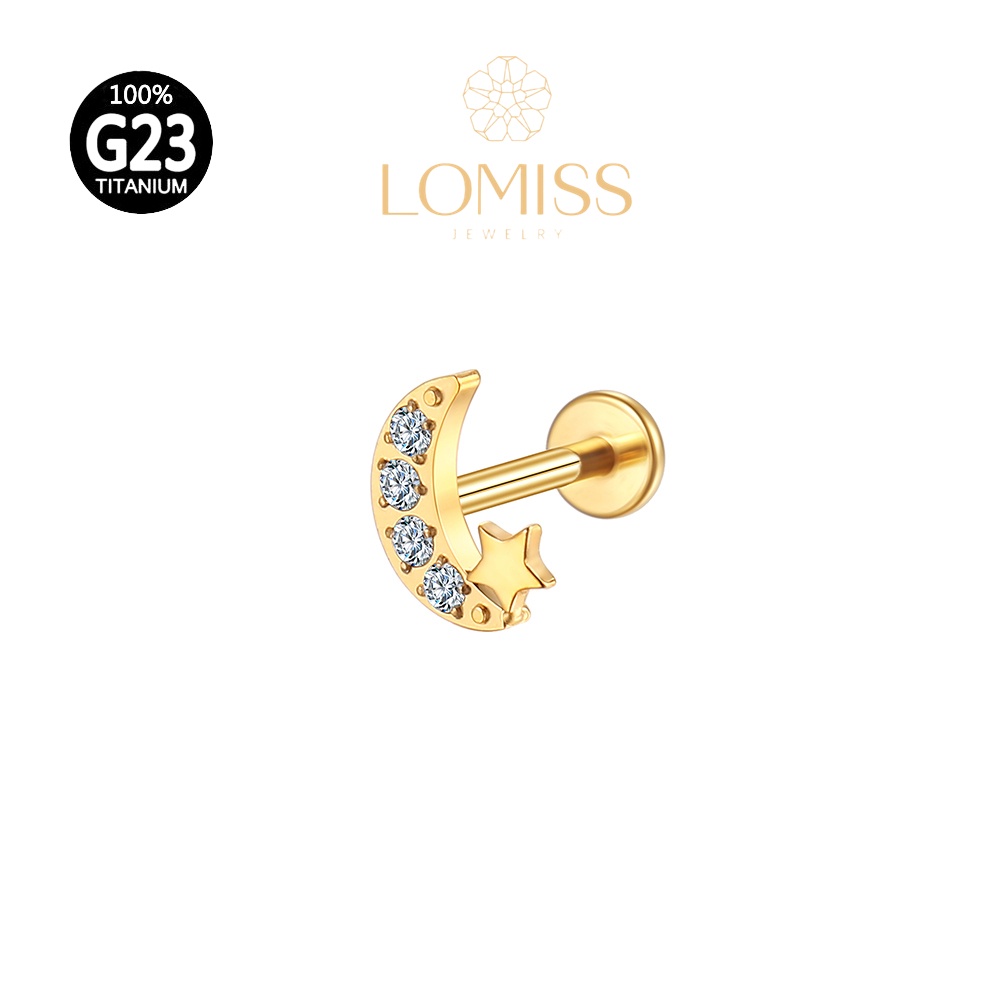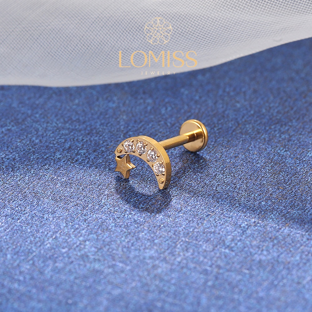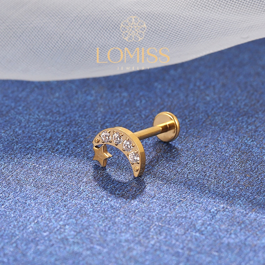 Piercing Labret de Titânio PVD com Engaste de Lua/Estrela Zircônia