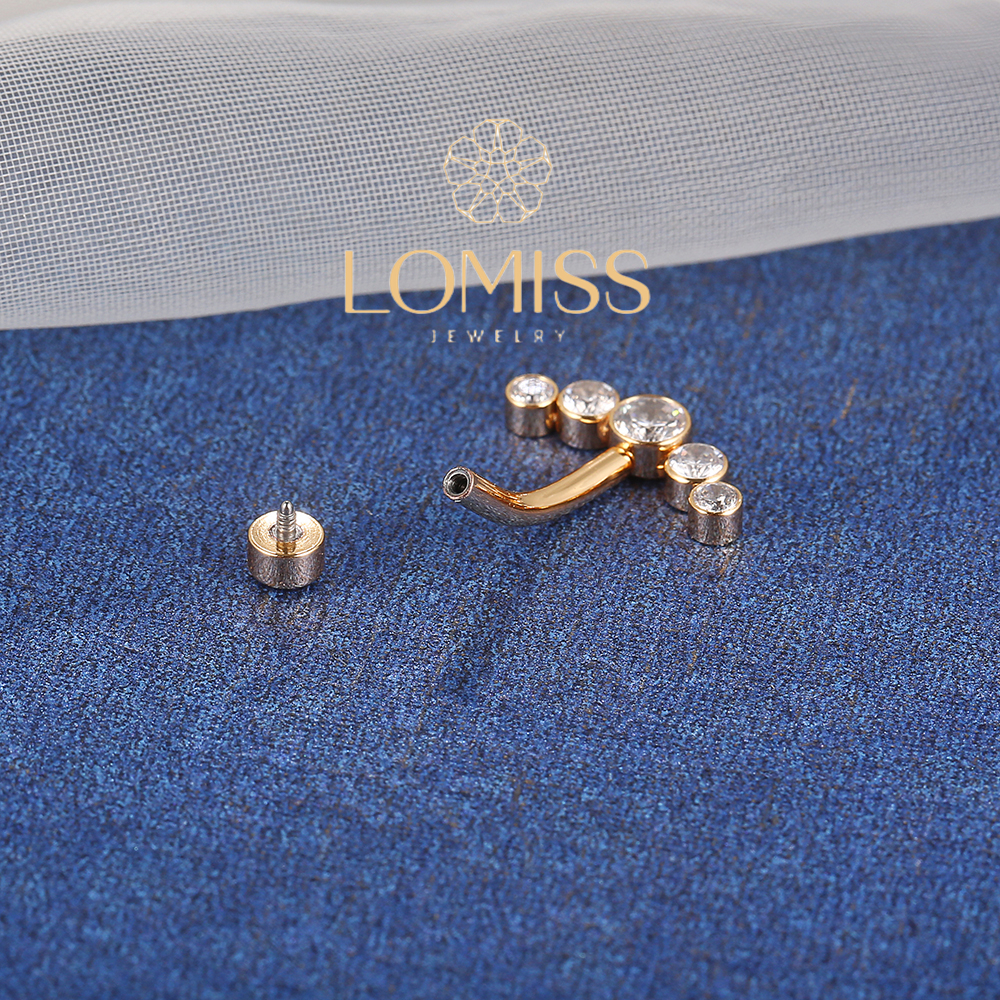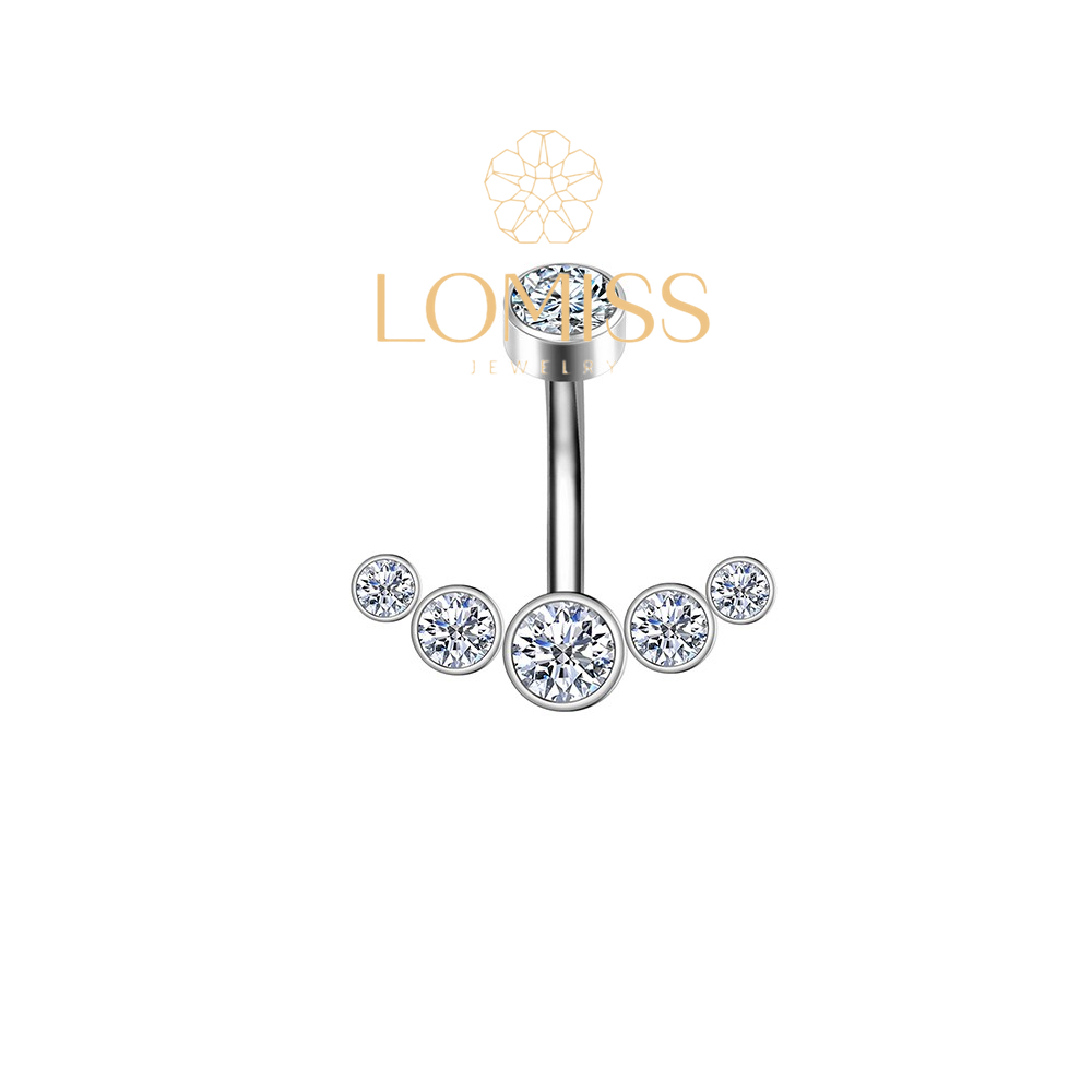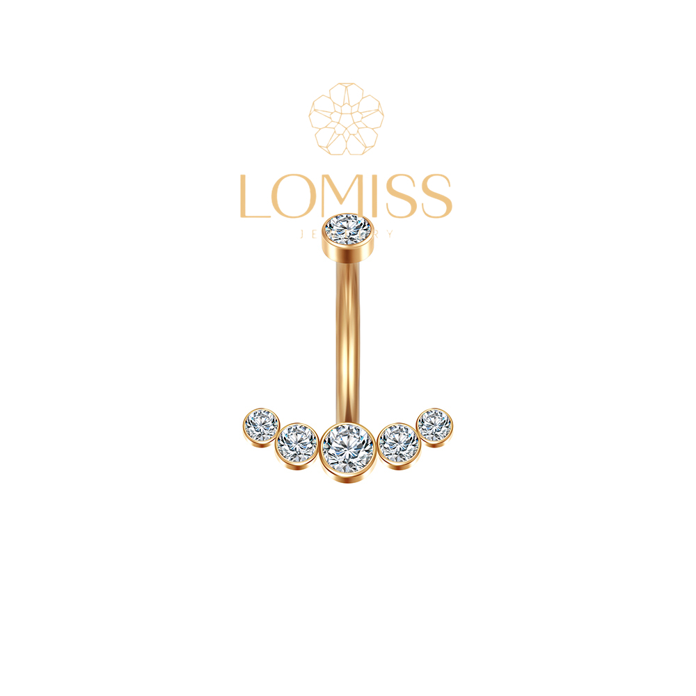 Piercing Umbigo Banana Aço Cirúrgico Pvd Cluster 6 Zircônias Cravejada