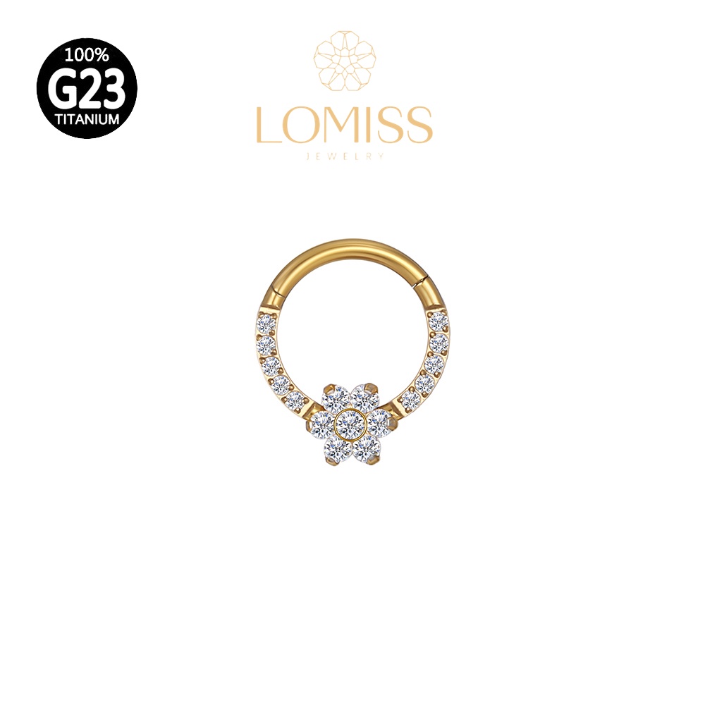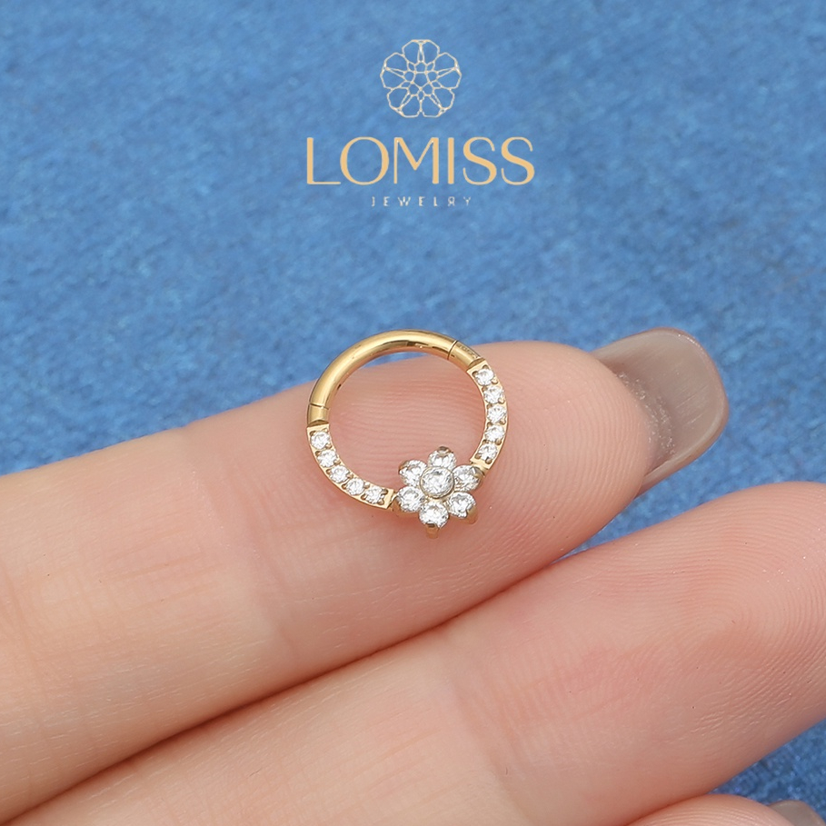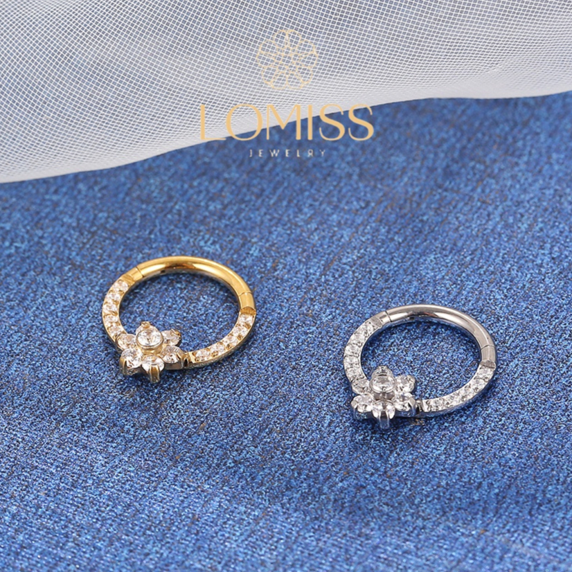 Piercing Orelha Nariz Argola Titânio PVD Clik Flor Zircônia Cravejada《Lomiss semijoias》