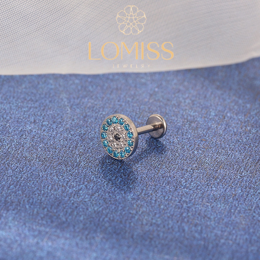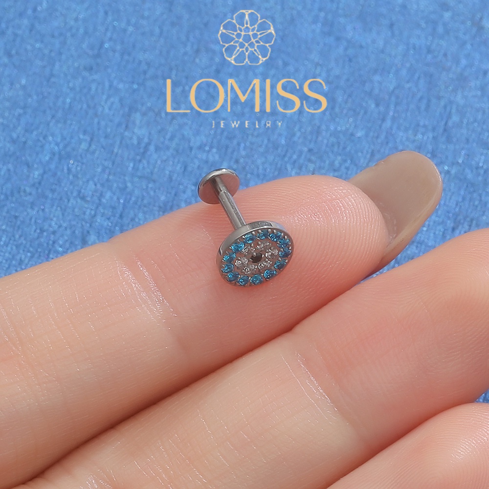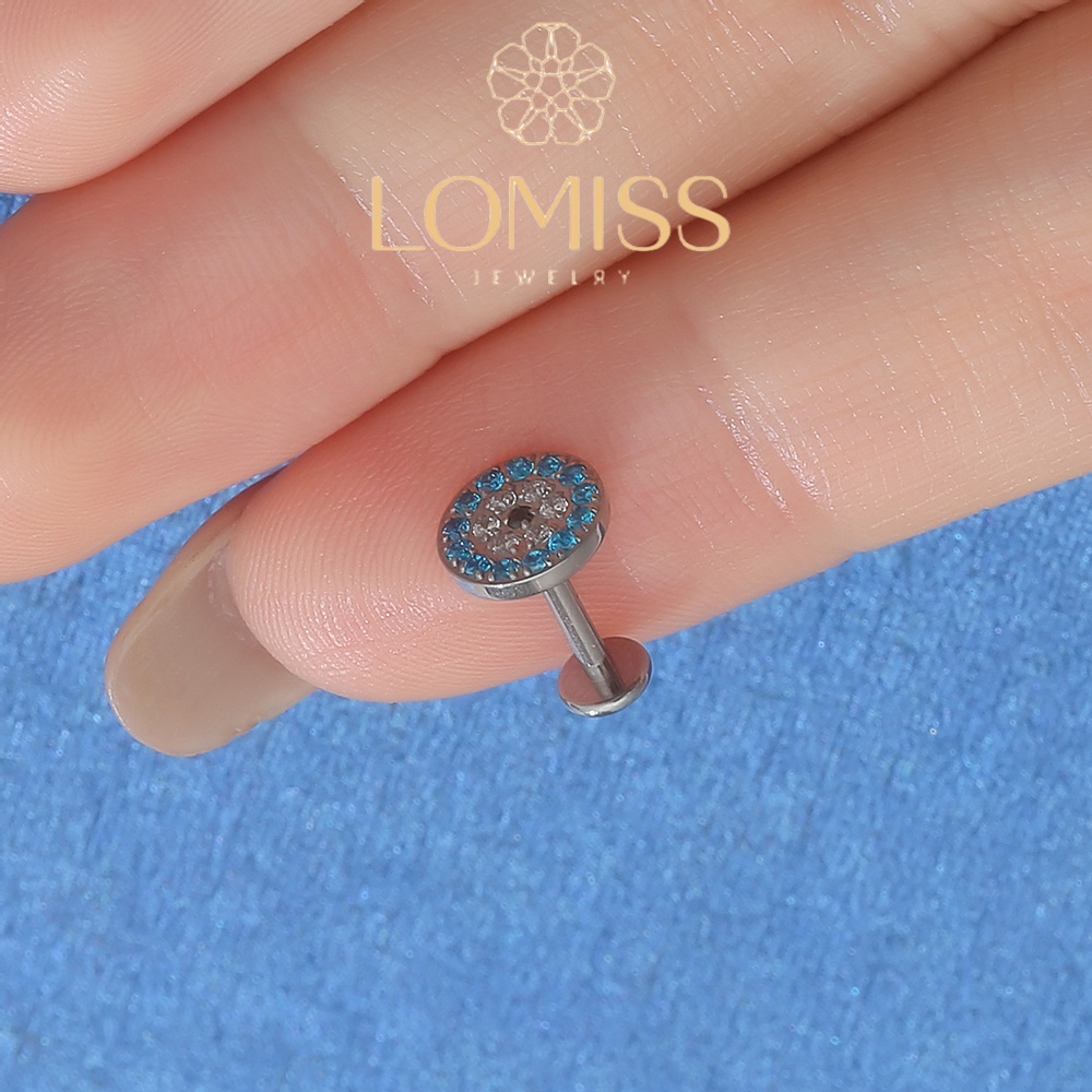 Piercing Helix Conch Labret Titânio redondo Zircônia Azul《Lomiss semijoias》