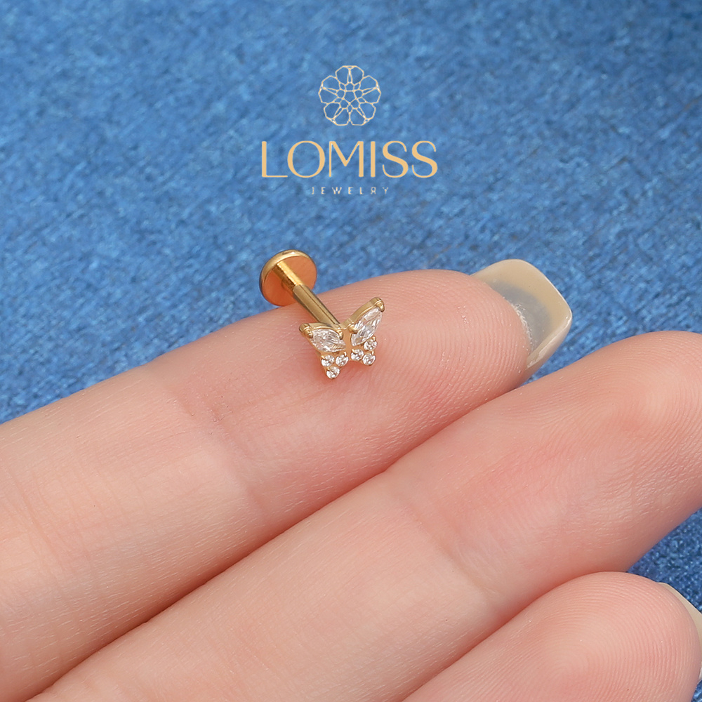 Piercing Helix Tragus Conch Boca Labret Titânio Pvd Borboleta Zircônia Cravejada