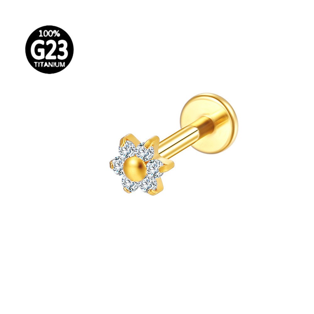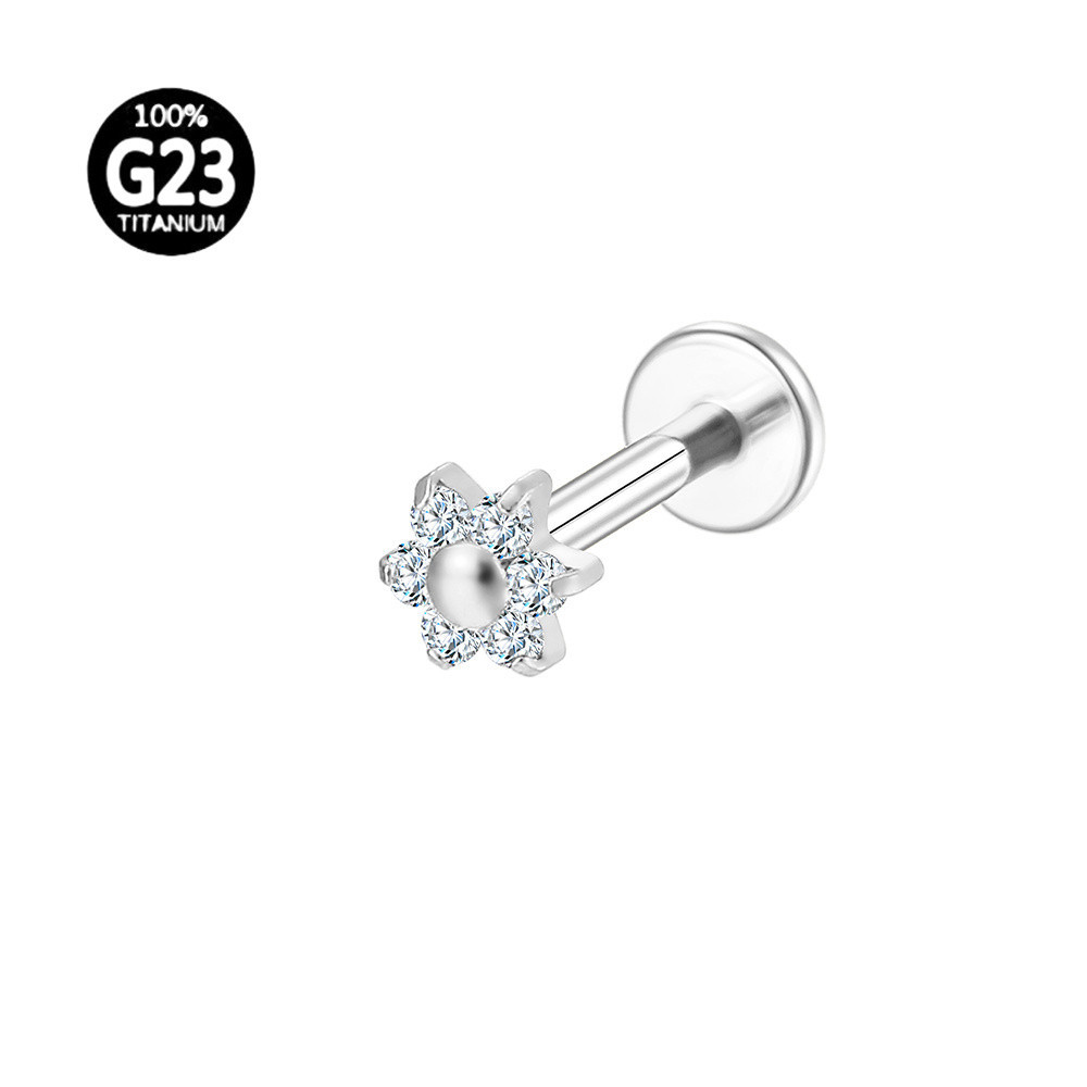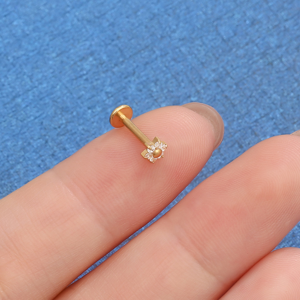 LOMISS Piercing Labret Aço Cirúrgico Flor Zircônias Ponto De Luz Helix Tragus